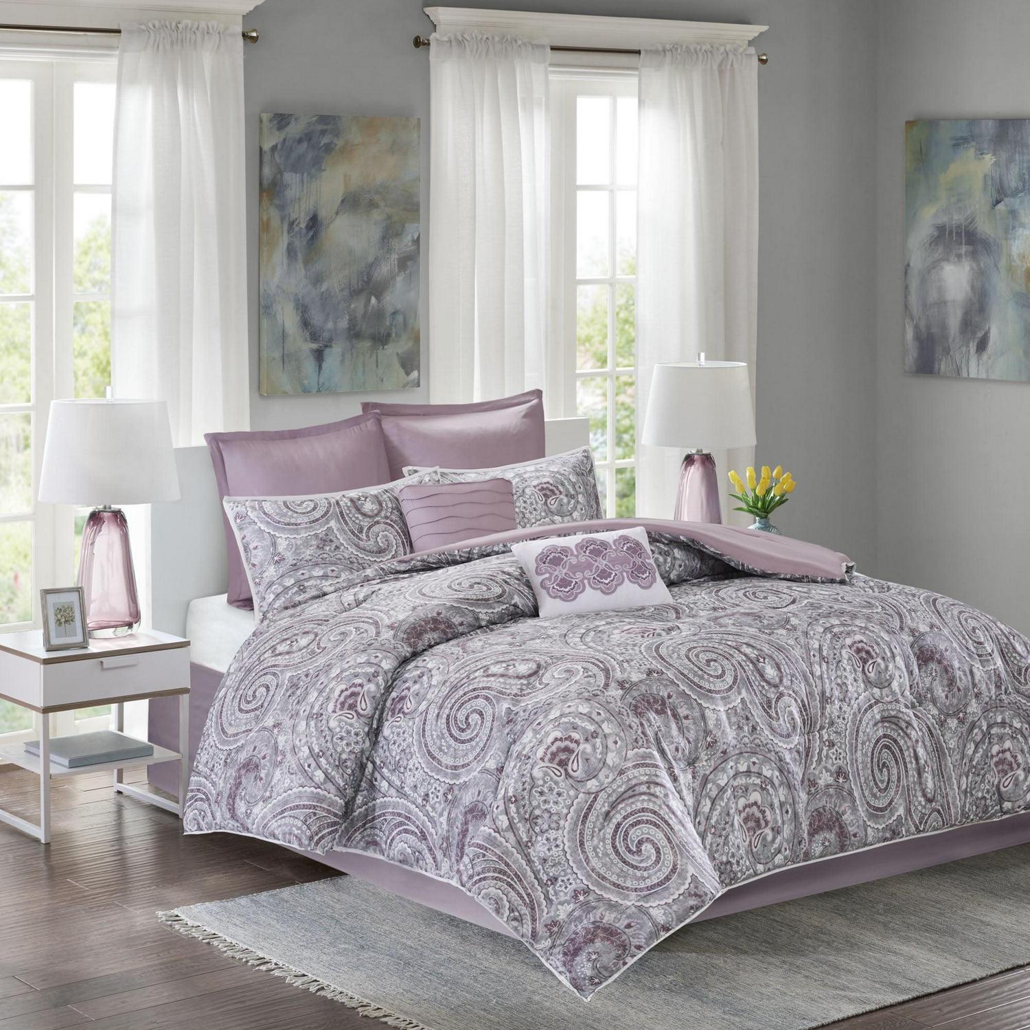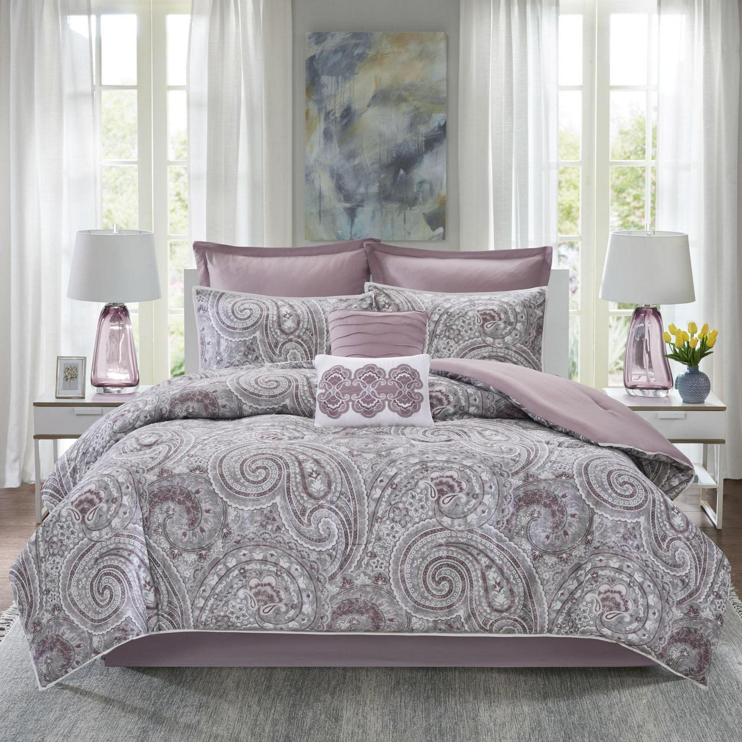 Comfort Spaces Kashmir 8 Piece Microfiber Comforter Set, King, Purple
