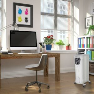 - Oil-filled heater operates silently to minimize distractions