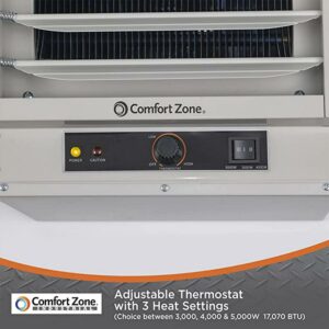 Comfort Zone 5,000-Watt, 240v Hard Wired Fan-Forced Ceiling Mount Heater with Dual Knob Controls and Safety Overheat Protection, ETL Compliant, Grey
