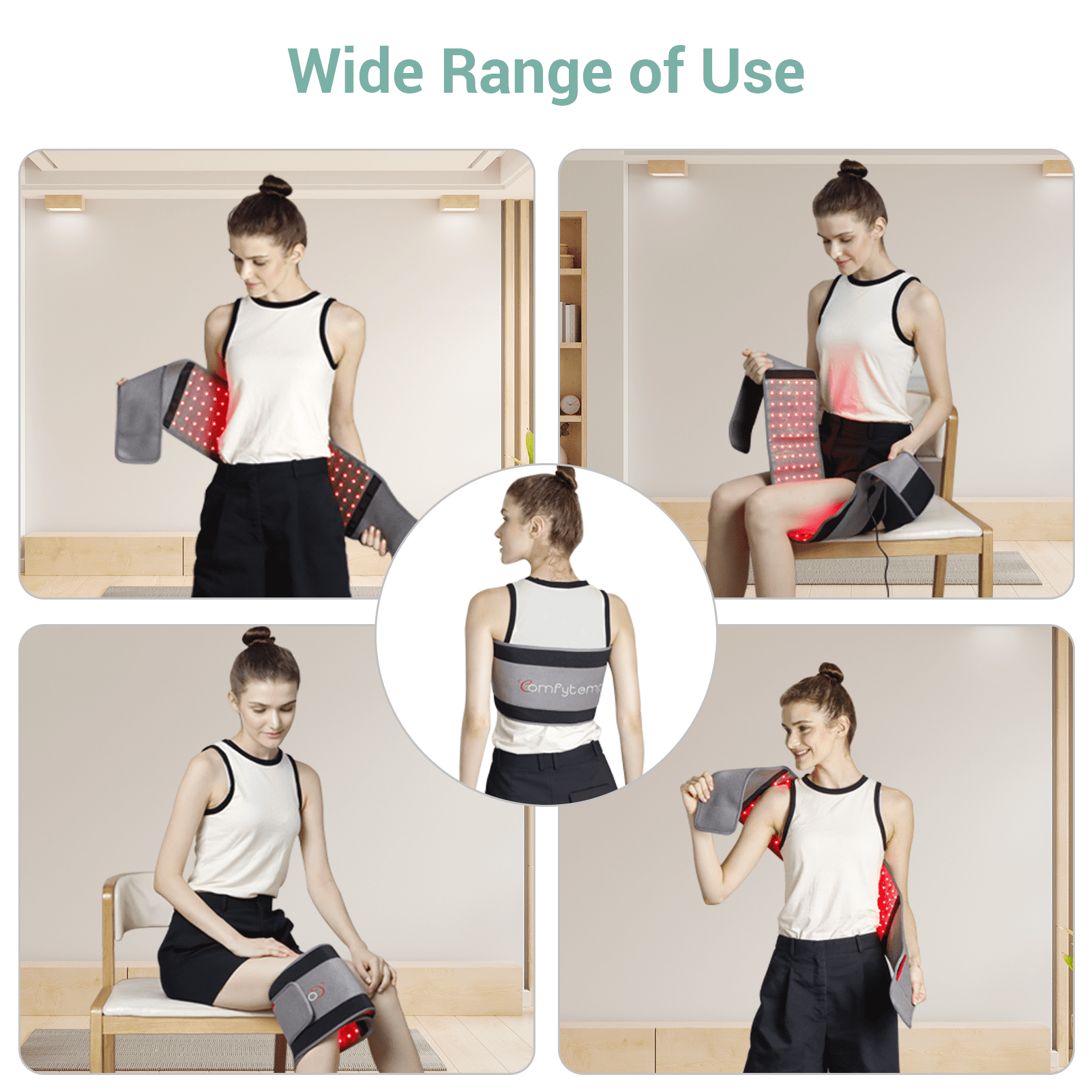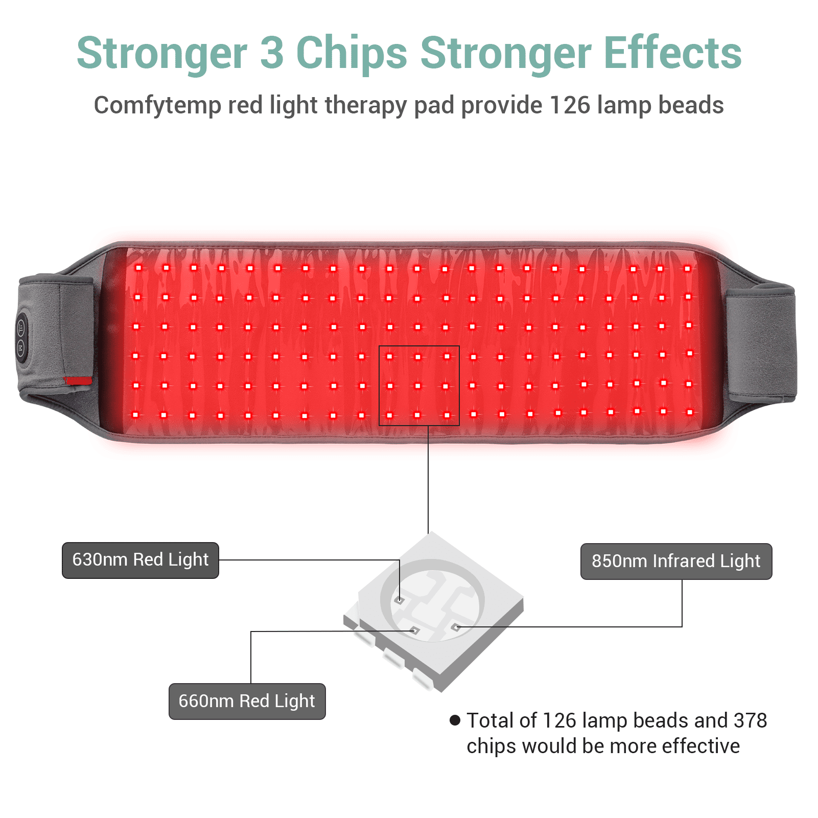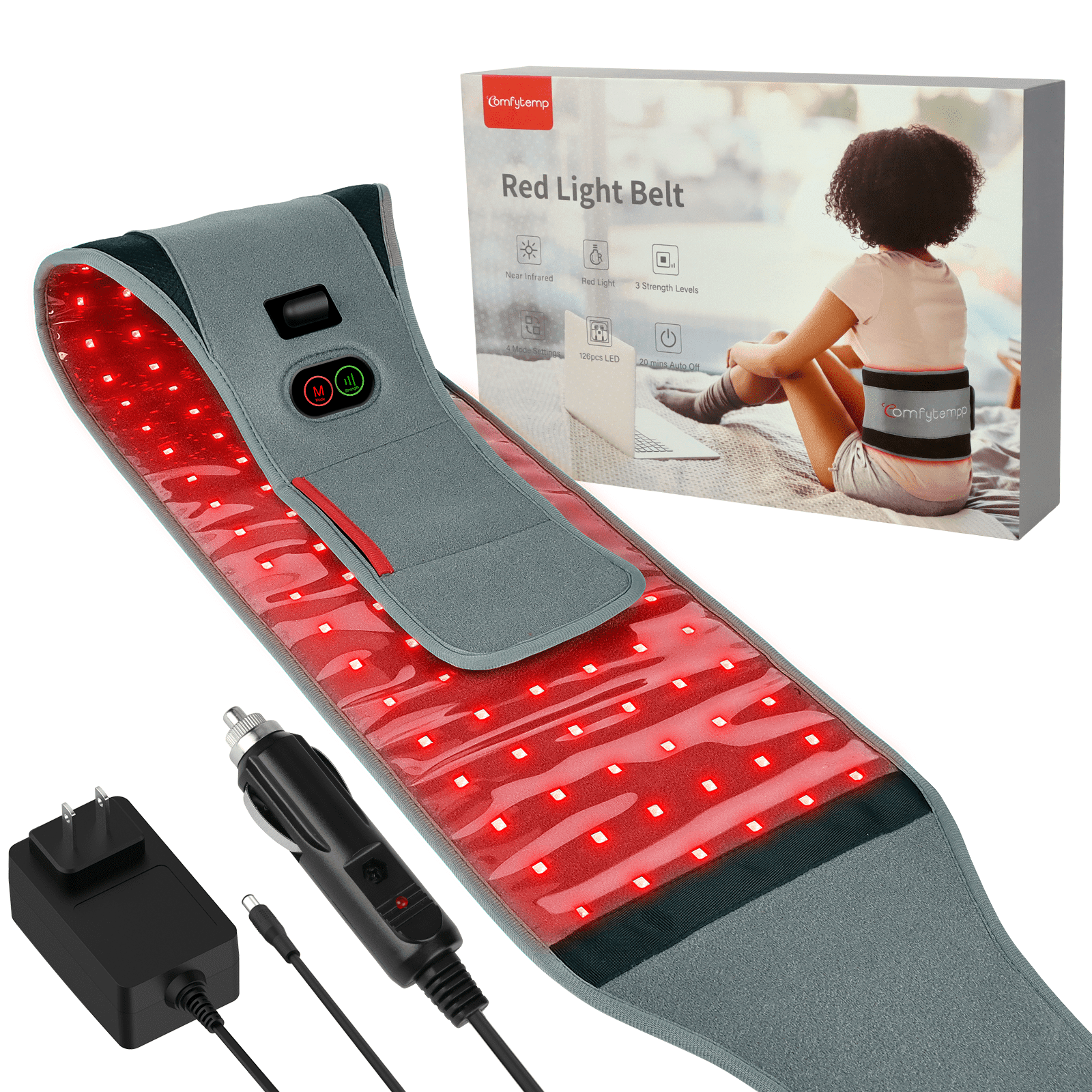 Comfytemp Infrared Red Light Therapy Belt provides convenient and effective red light therapy at home. With 126 professional lamp beads and 3 chips technology, it delivers targeted healing and pain relief. The therapy belt combines red and infrared light to accelerate wound healing, reduce inflammation, and boost energy levels. It offers four modes, including a pulse mode for stronger pain relief. Lightweight and compact, it’s suitable for various body areas and comes with a 20-minute timer. Experience the benefits of red light therapy with Comfytemp.
