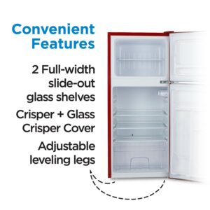 – This refrigerator comes with two full-width slide-out glass shelves so you can store cherished foods and favorite beverages. In our small refrigerator, youll also find a large full-width crisperideal for vegetables, fruits, and other healthy favorites. The total fresh food compartment space is 3.17 cu. ft. to ensure plenty of room.