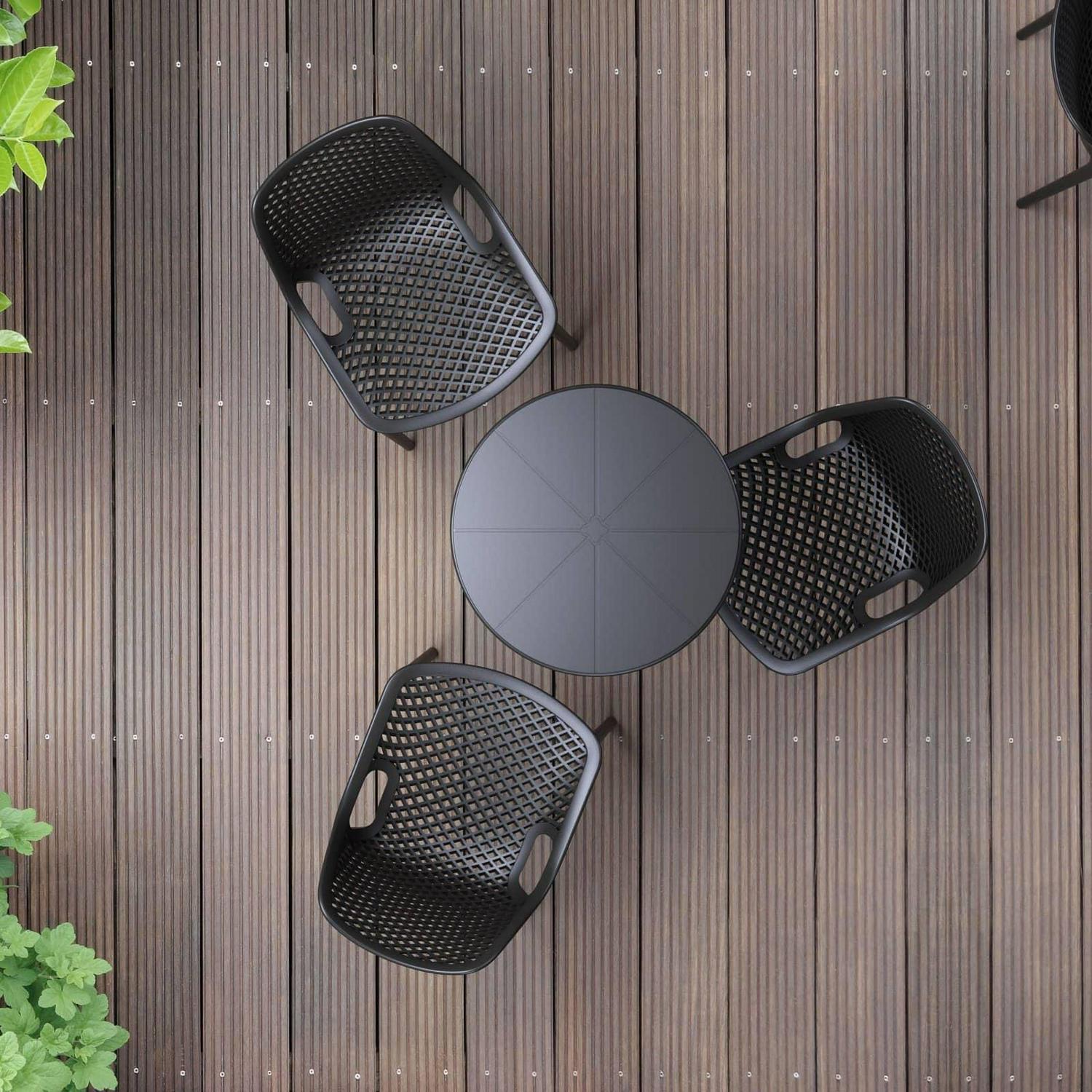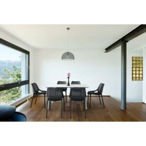 The 100% recyclable resin polypropylene construction features gas injection molded legs, not to mention a maintenance-free, easy-clean design. Even better, this special material resists fading and corrosion from sun, water, salt, and chlorine (hello, pool deck). And when the season winds down, the chairs stackable design makes them a breeze to store.