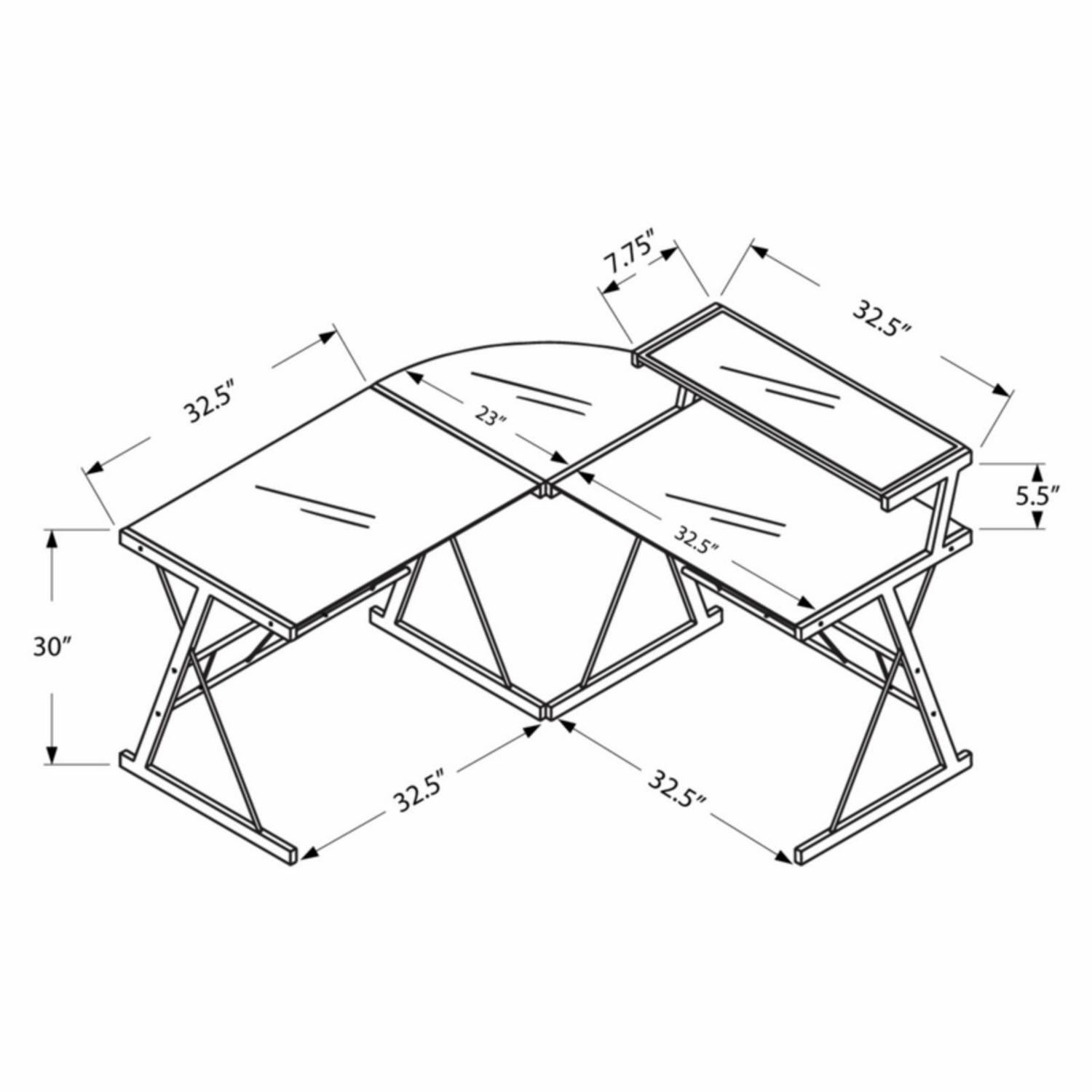 - L-shaped desk with glass top