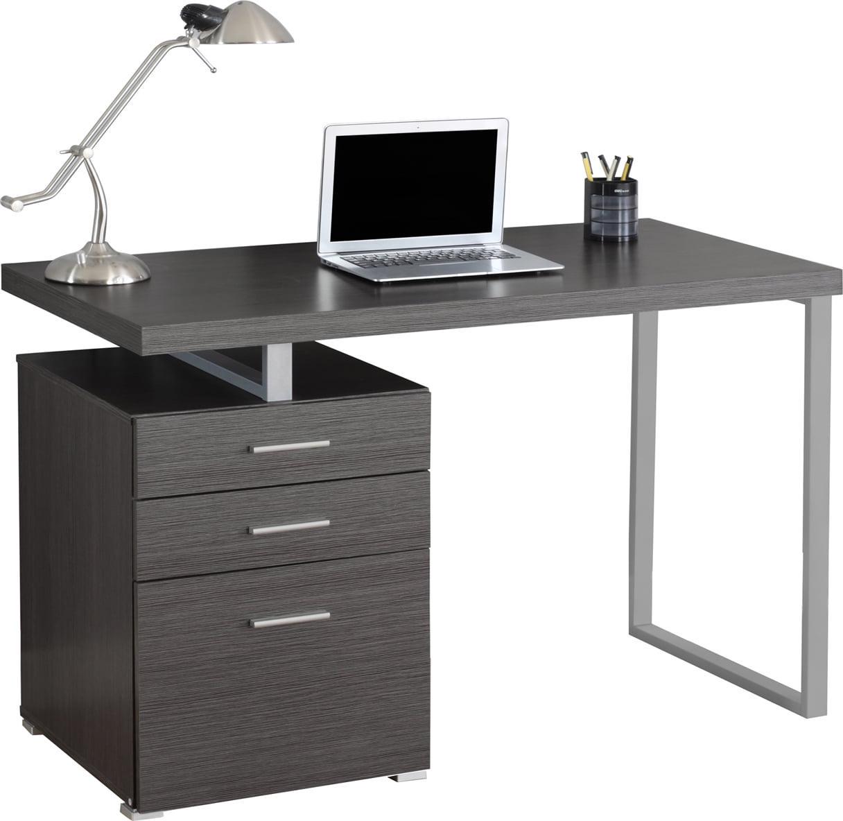 The perfect office needs the perfect desk to bring it all together and help you get your work done, which is where the Monarch Contemporary Gray Computer Desk comes in. Sleek and modern, this desk features an attractive wood veneer gray finish that looks great with a variety of contemporary, modern, and Art Deco styles. It can be assembled in either a right or left side configuration and comes with 2 drawers and a large file drawer to keep all your documents and supplies neat and organized. Get the most in both functionality and style in your study or office with the Monarch Contemporary Gray Computer Desk.