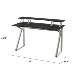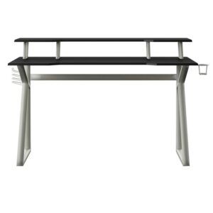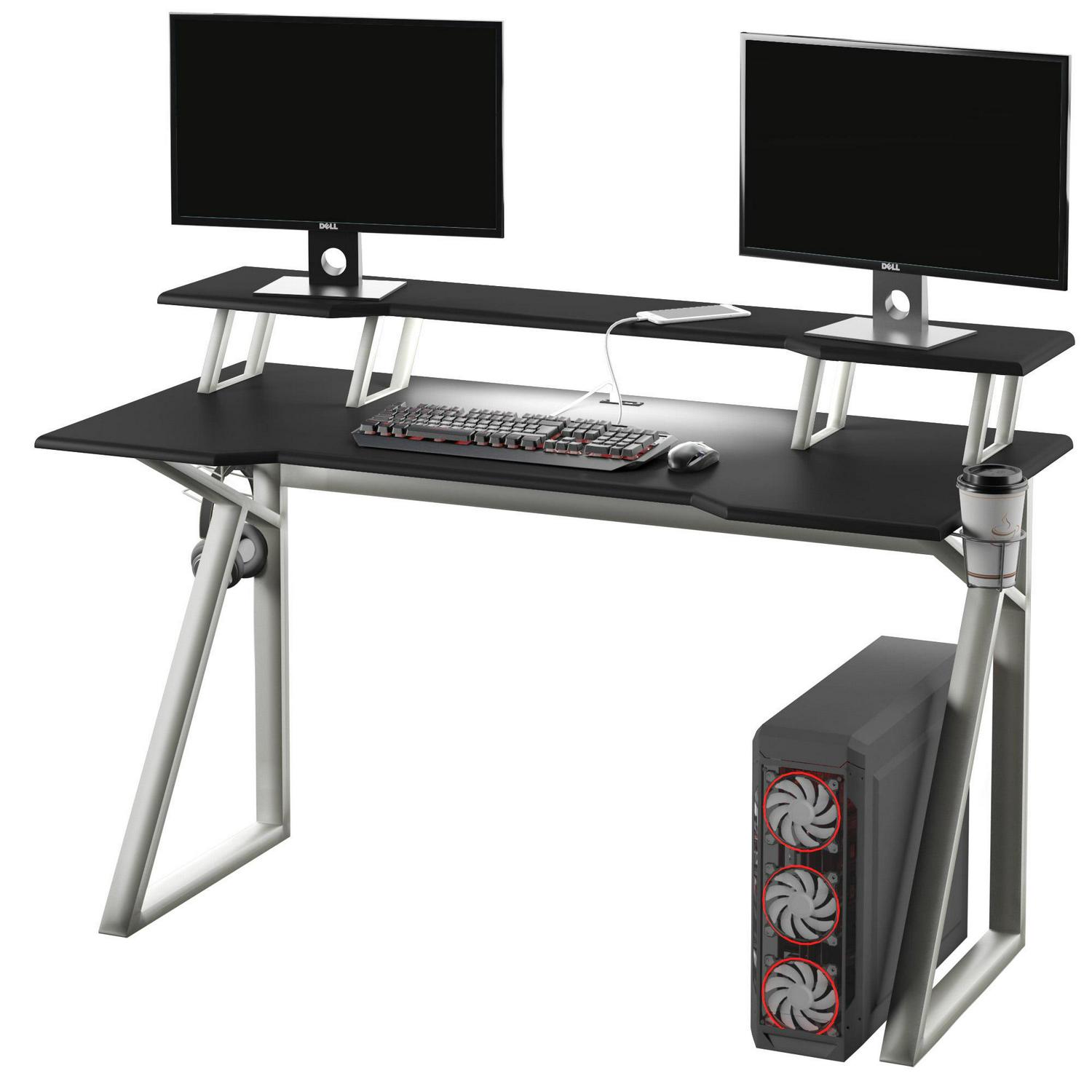 Computer Gaming Desk with USB Charging Ports in Brushed Black