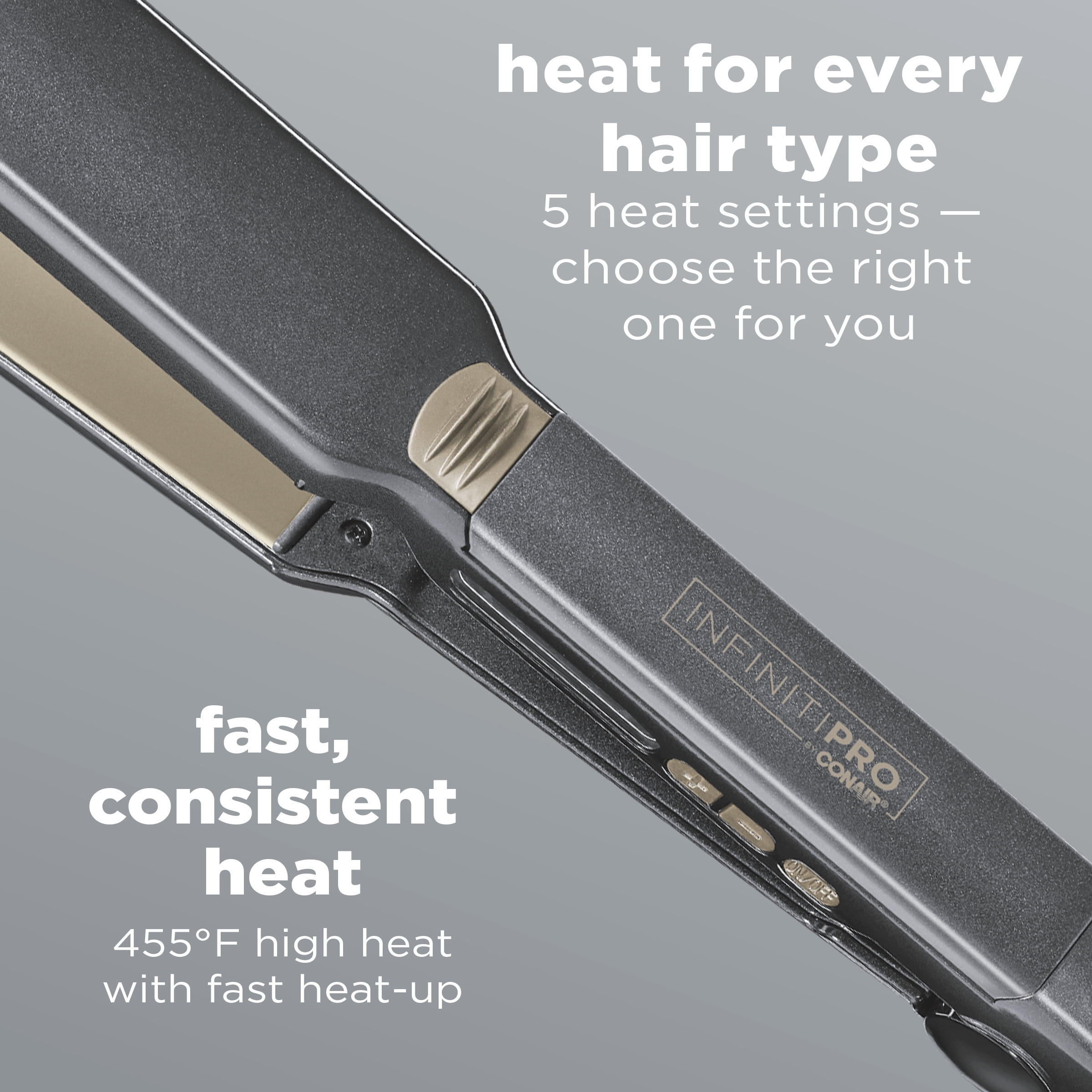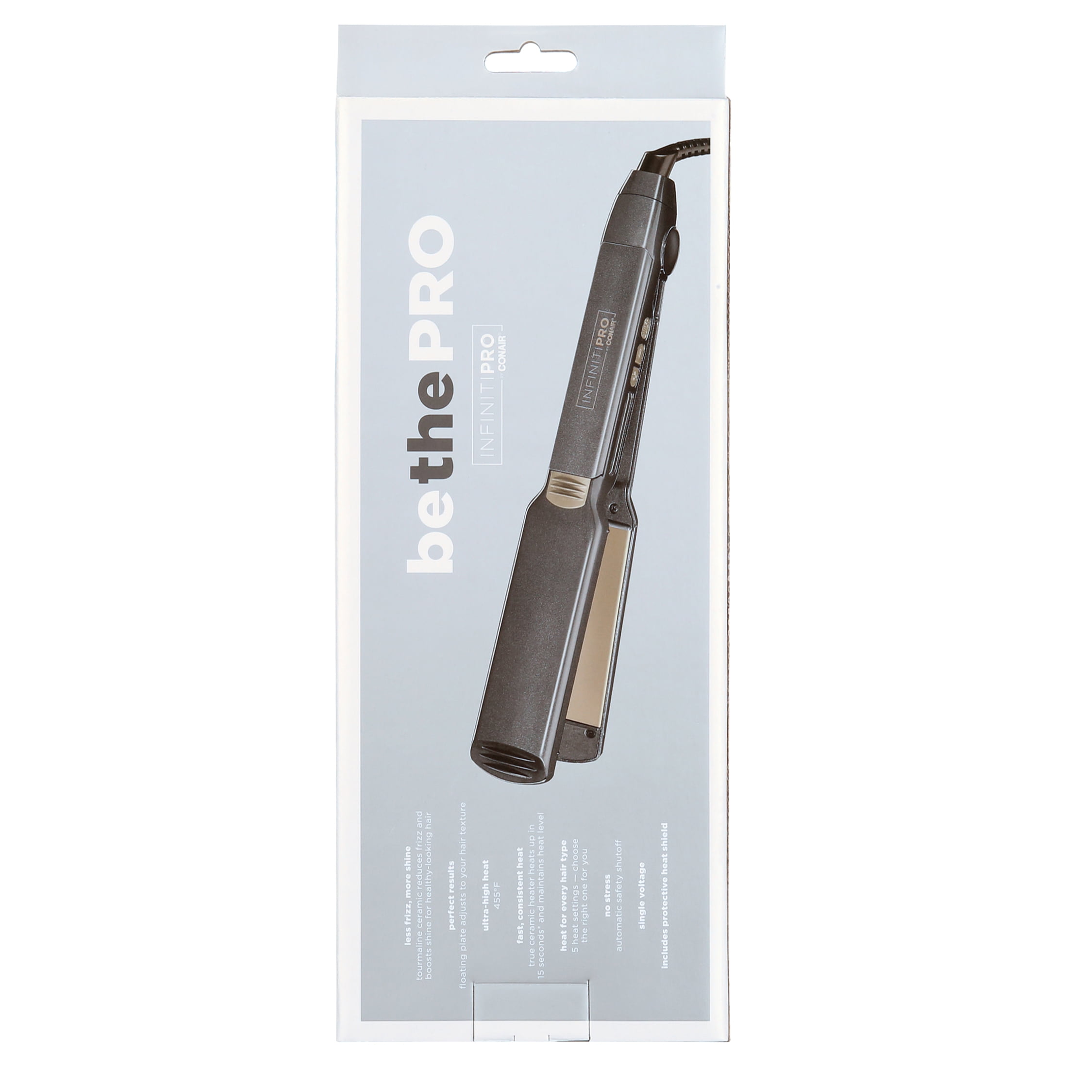 Conair InfinitiPro Professional 1.5″ Tourmaline Ceramic Titanium Flat Iron Hair Straightener, Red: Tourmaline Ceramic Flat Iron: With 5 heat settings, a floating plate, and advanced ceramic technology that evenly heats up to 455 without hot spots, this flat iron is perfect for all hair types Less Frizz, More Shine: Use this tourmaline ceramic flat iron to straighten hair or create beachy waves; Featuring 15-second heat up and a true ceramic heater that ensures high, even heat for long-lasting style Wavy or Sleek: Whether you want to add volume and flip or create pin-straight styles, Conair full line of ceramic, double ceramic, tourmaline ceramic, and titanium flat irons have you covered Innovative Styling Tools: From curling irons and wands to flat irons, hot air brushes, auto curlers, and more; Conair makes high-quality styling tools for all hair types Conair Hair Care: Since 1959, we have made innovative small appliances, hair styling tools, and more; Our hair care line includes high-quality hair dryers, brushes, styling tools, and hair accessories