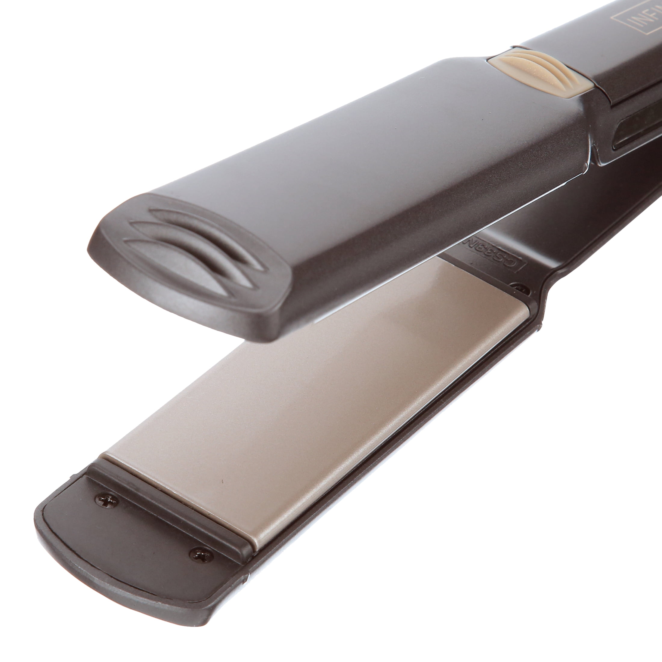 Get shiny straight, smooth styles with this salon-quality flat iron. Tourmaline ceramic-coated plates prevent static, protect hair from damage, and create shiny smooth, straight styles that last, even in humidity. Instant heat-up and recovery up to an ultra-high 455 degrees F and variable heat settings provide fast, versatile styling options. You can even add a flip with a twist of the wrist.