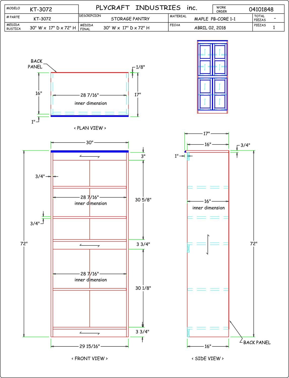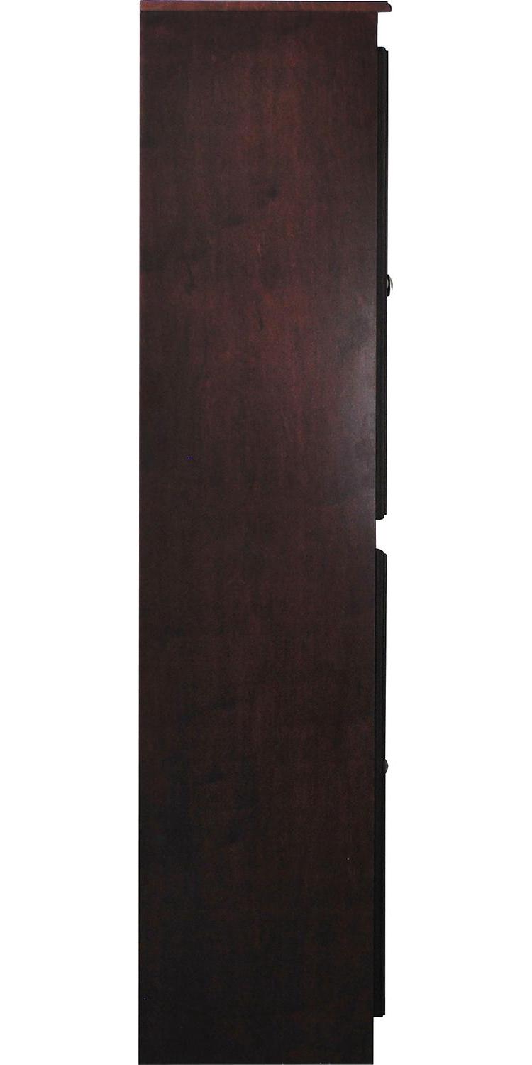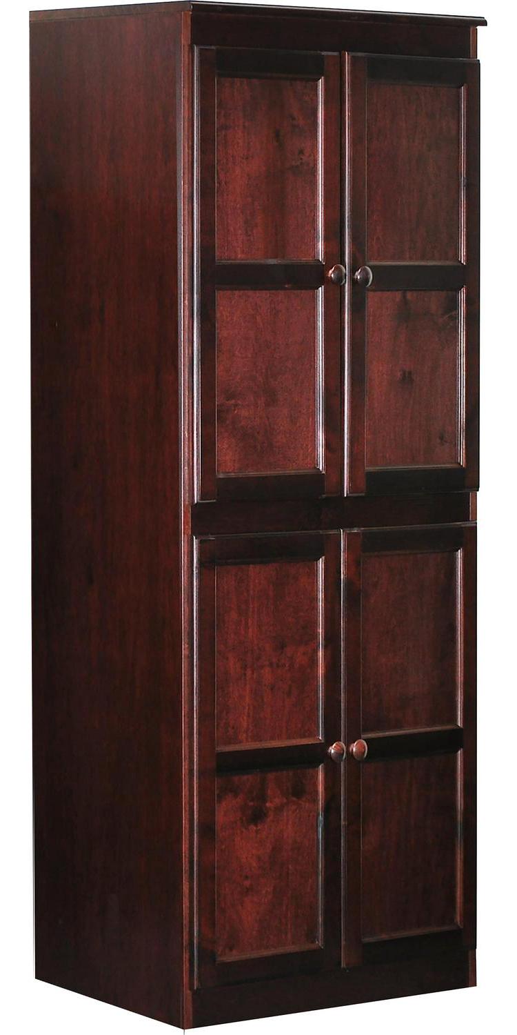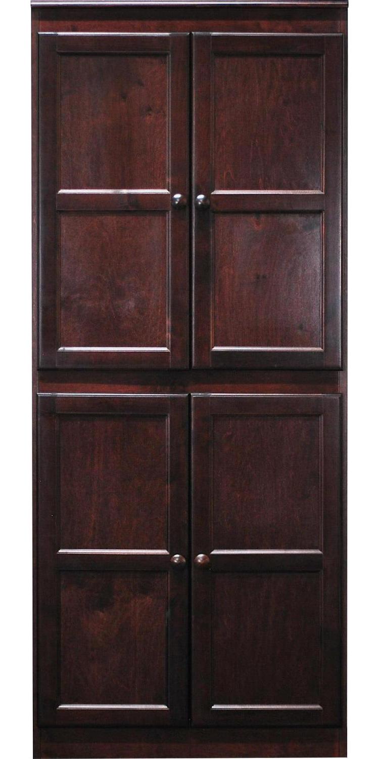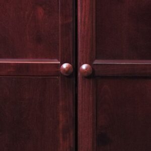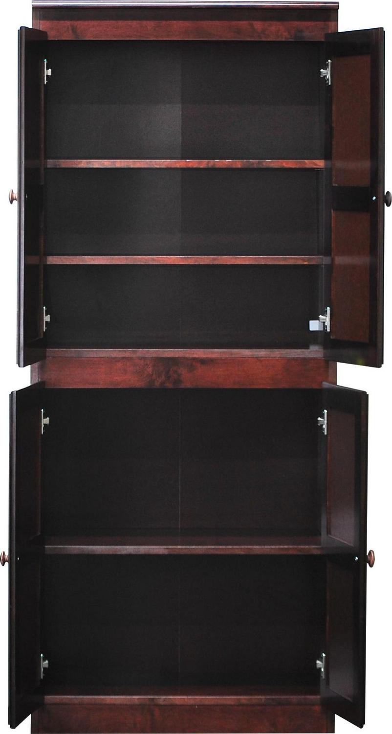 The Concepts in Wood 5 shelf storage cabinet is ideal for use as a pantry in the kitchen, or in the office, laundry, bedroom, garage or any room where additional concealed storage is needed. This is a piece of furniture constructed of wood veneer panels and solid wood accent pieces. To ensure a superior uniform color each door is assembled and hand finished and the entire storage cabinet gets a 10 step zero VOC emission polyurethane Cherry finish that is durable, beautiful, and resists stains for years. 3 adjustable shelves allow you to customize for short or tall items. Two fixed shelves offer extra support and structural reinforcement. Each shelf can hold 70lbs. of evenly distributed weight. Create a wall of storage and add additional storage cabinets next to each other as your storage needs grow. Ready to assemble.