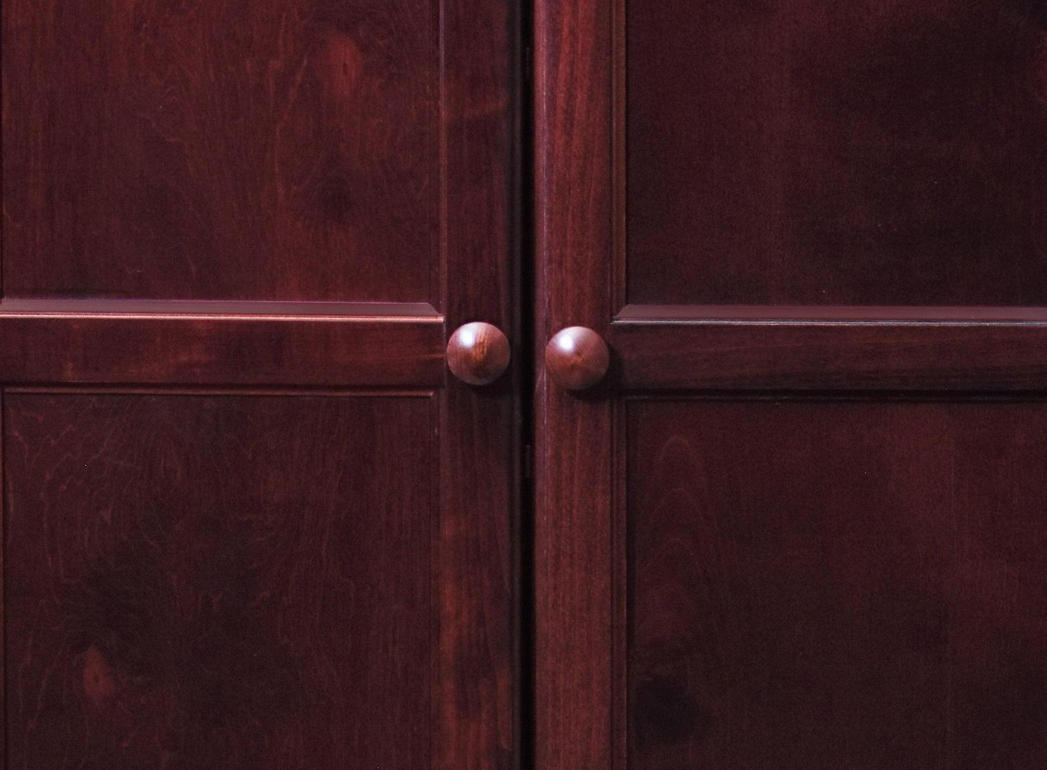 – To ensure a superior uniform color each door is assembled and hand finished and the entire storage unit gets a 10 step polyurethane Cherry finish that is durable, beautiful, and resists stains for years, environmentally friendly zero VOC emissions