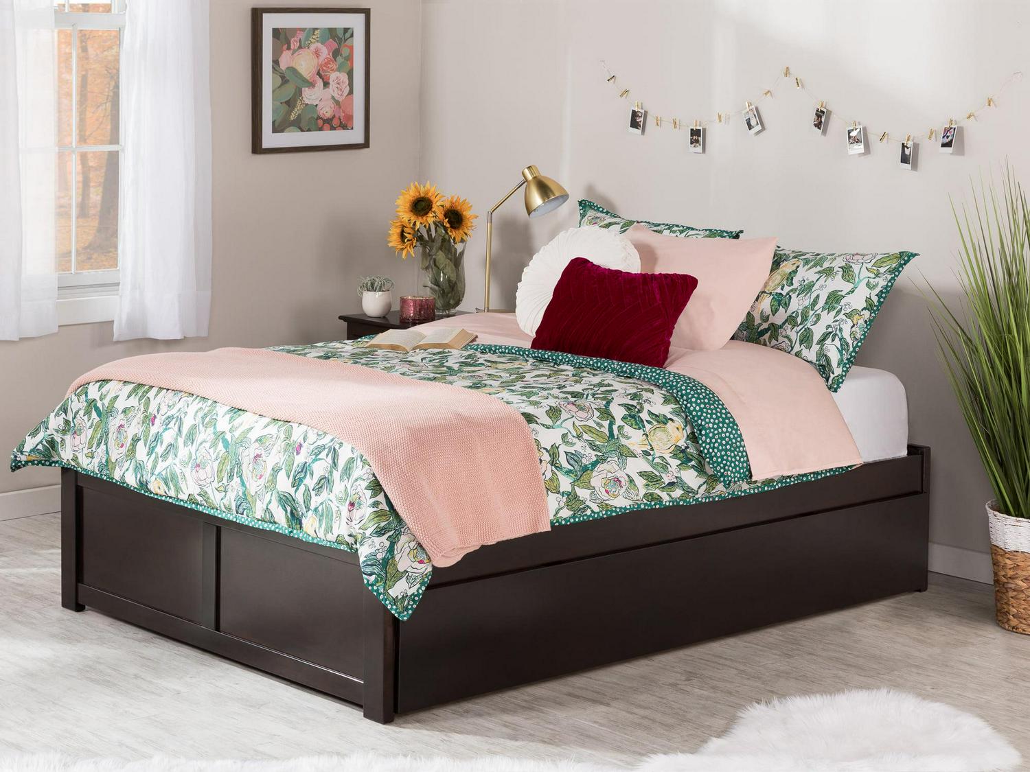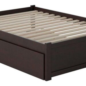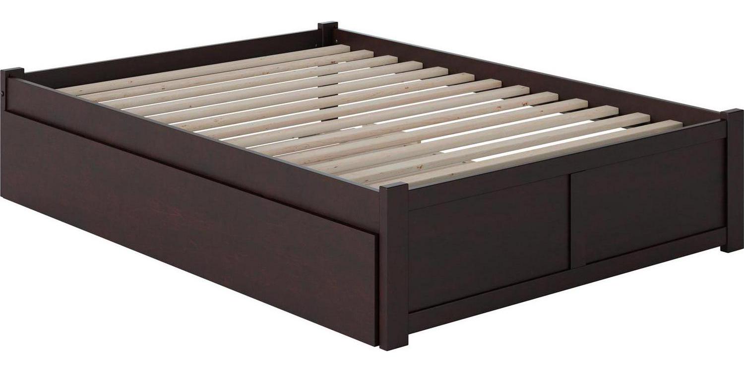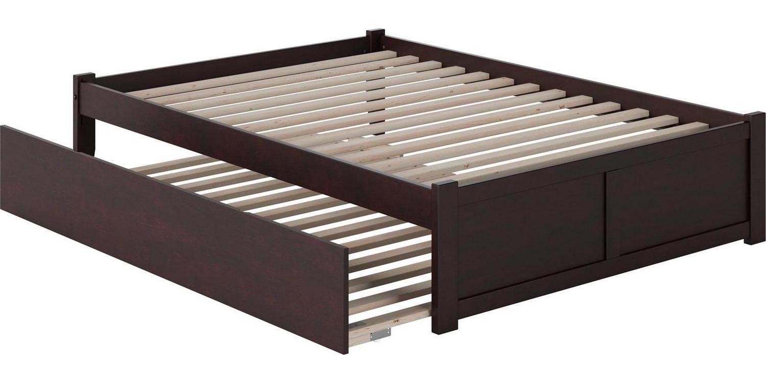 Concord Full Platform Bed with Flat Panel Foot Board and Full Size Urban Trundle Bed in Espresso