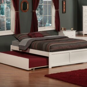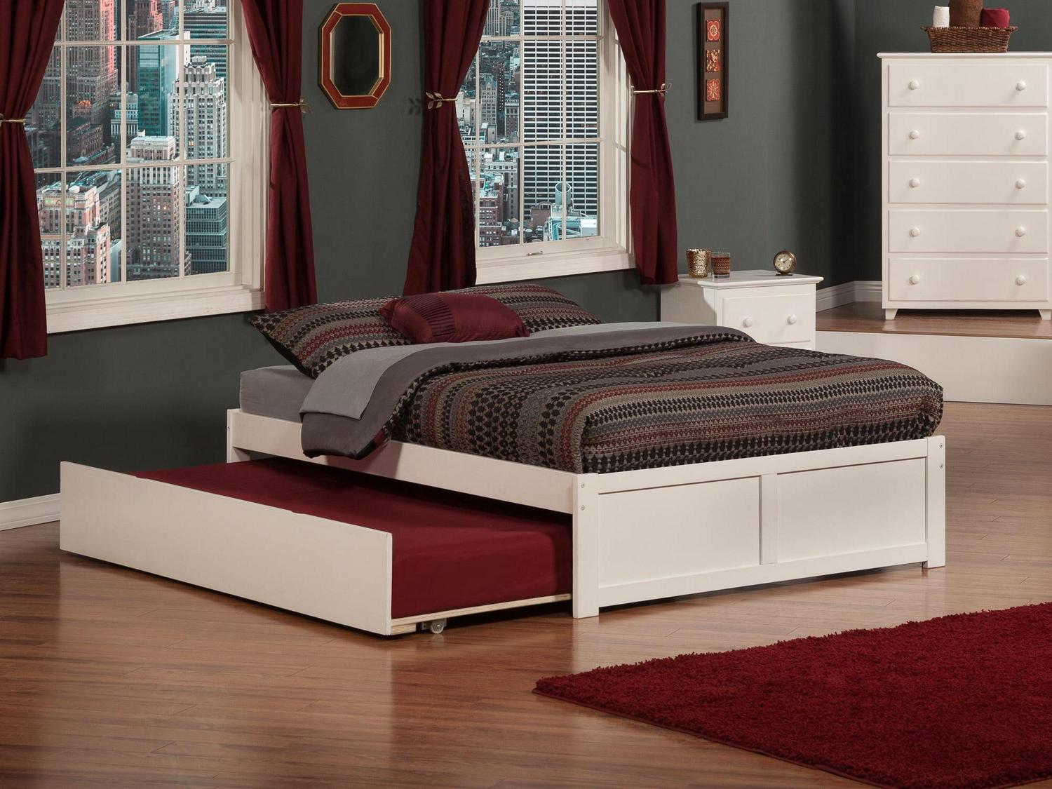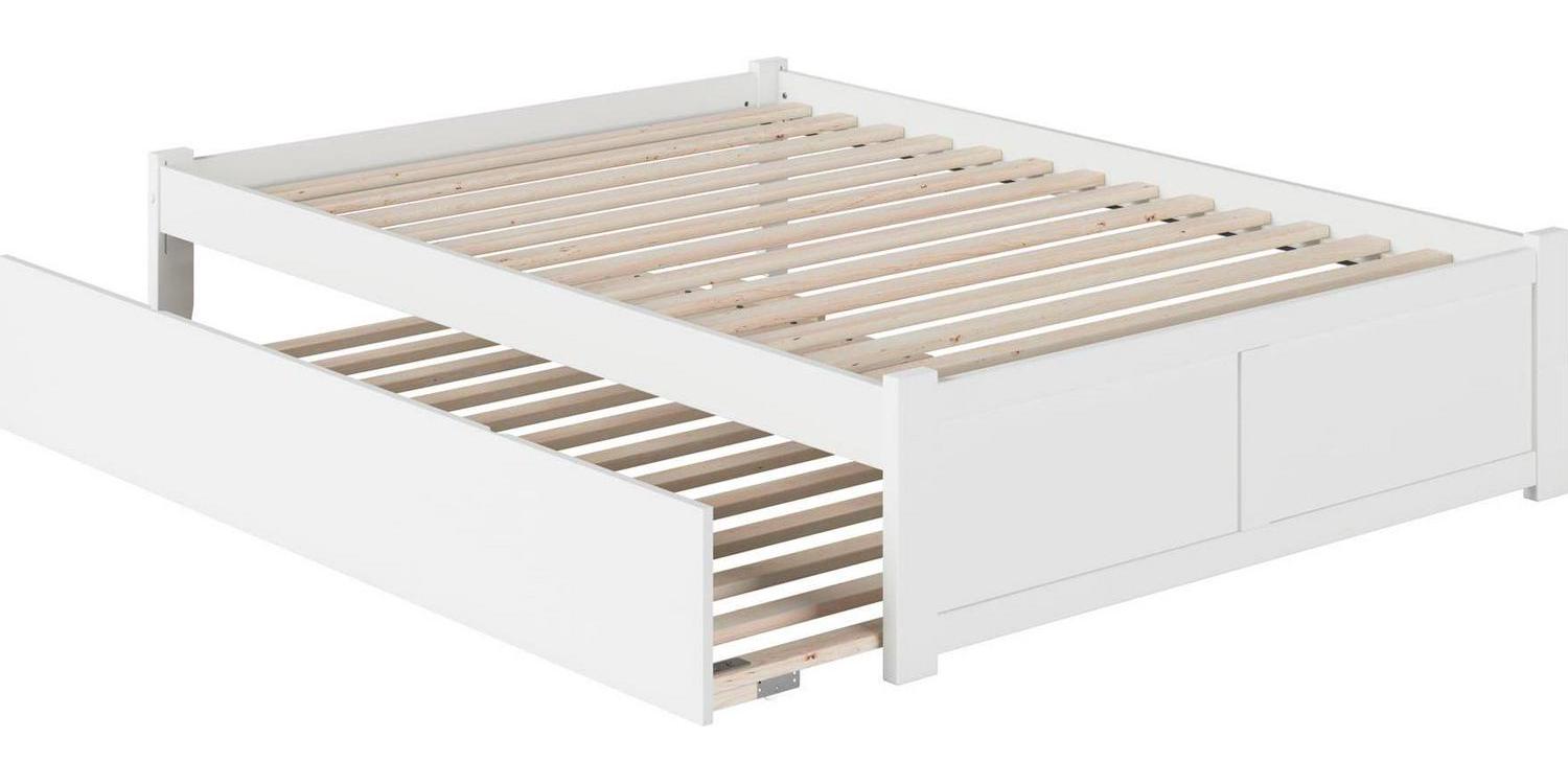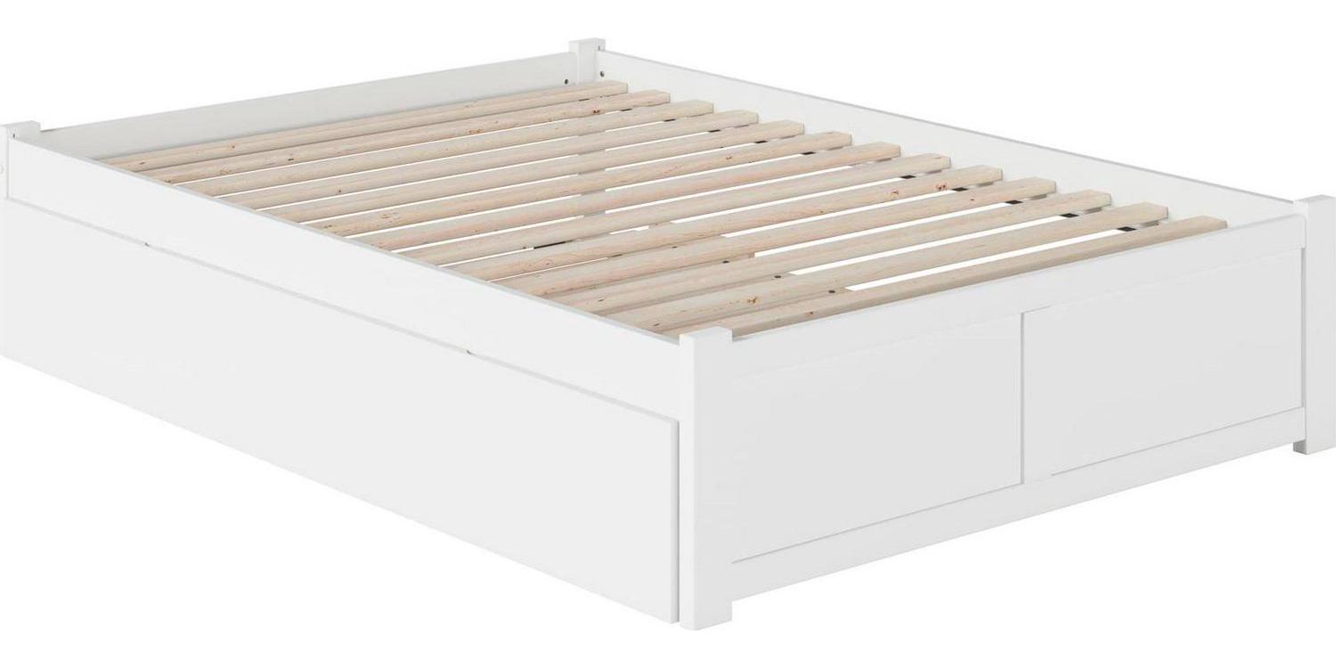 Concord Full Platform Bed with Flat Panel Foot Board and Full Size Urban Trundle Bed in White