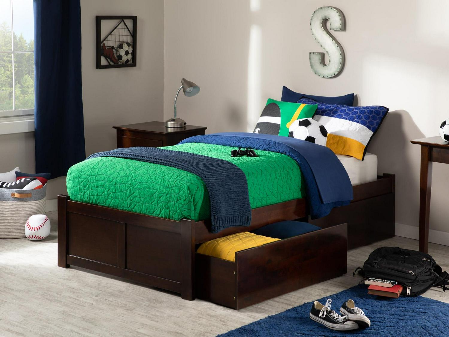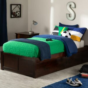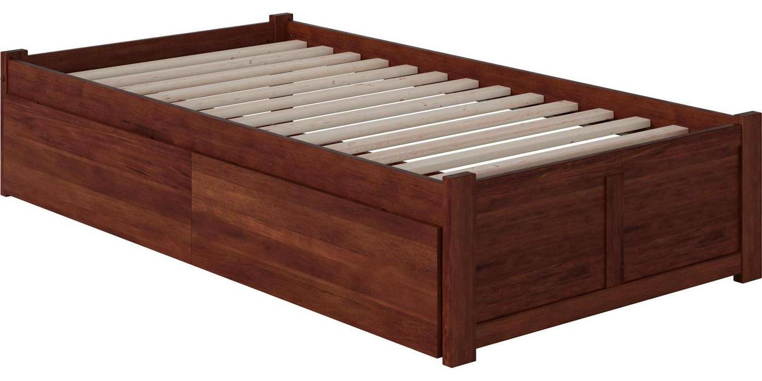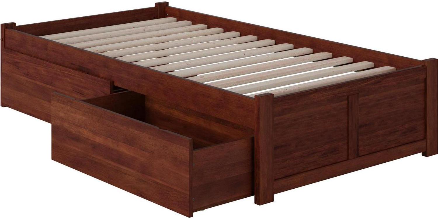 Concord Platform Bed with Flat Panel Foot Board and 2 Urban Bed Drawers, Brown, Twin