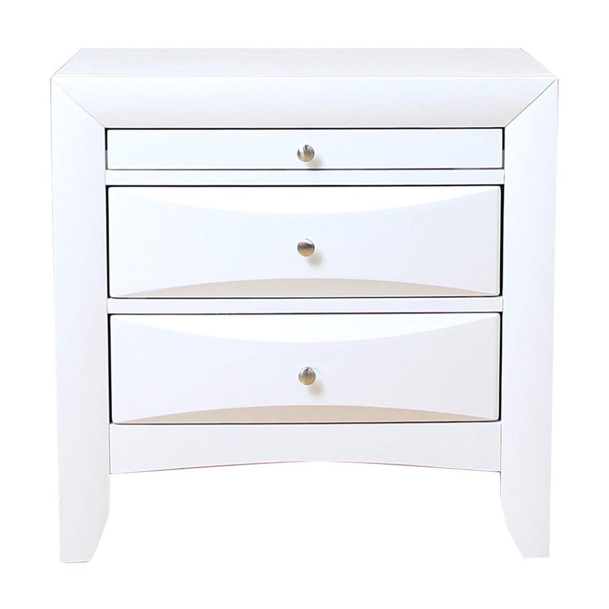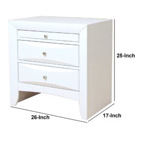 Contemporary 3 Drawer Wood Nightstand By Ireland, White- Saltoro Sherpi