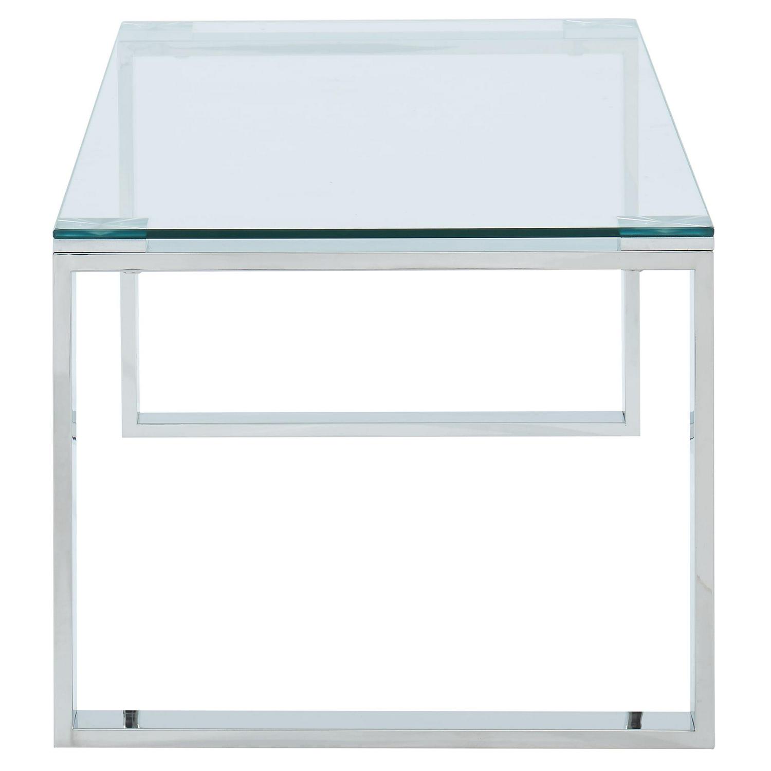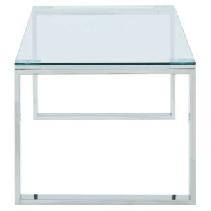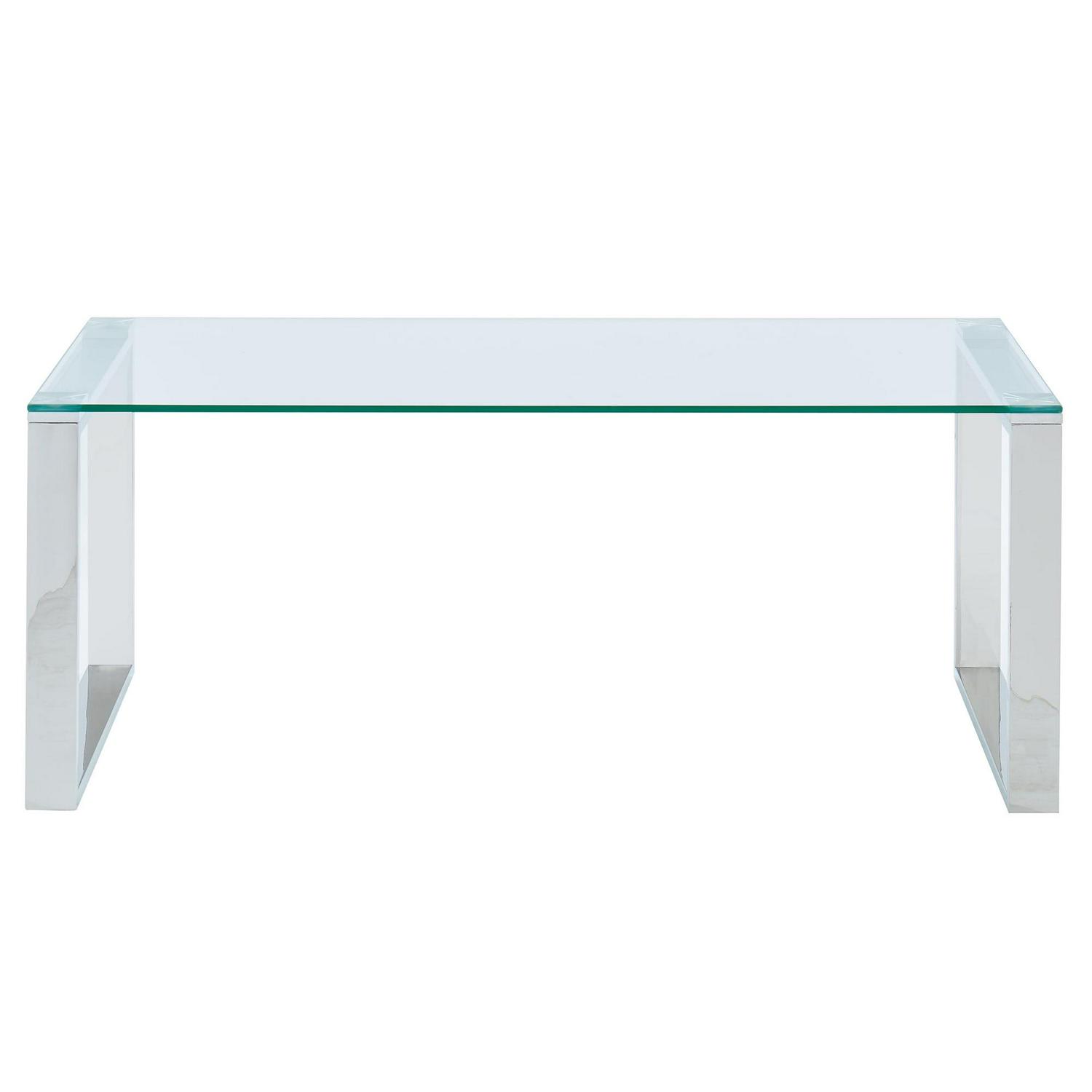 Create the perfect minimalist look with this collection of ultra contemporary tables. The polished silver stainless steel and the clear glass come together to create an airy, almost-not-there look that will open up your space while still keeping the functionality of a full-size coffee table. Use in a formal or casual living space.