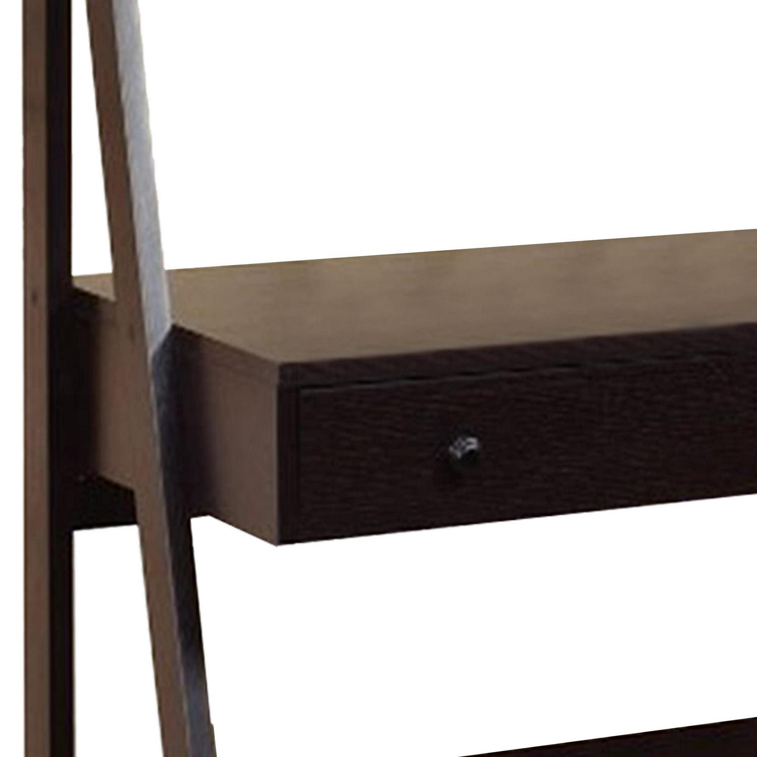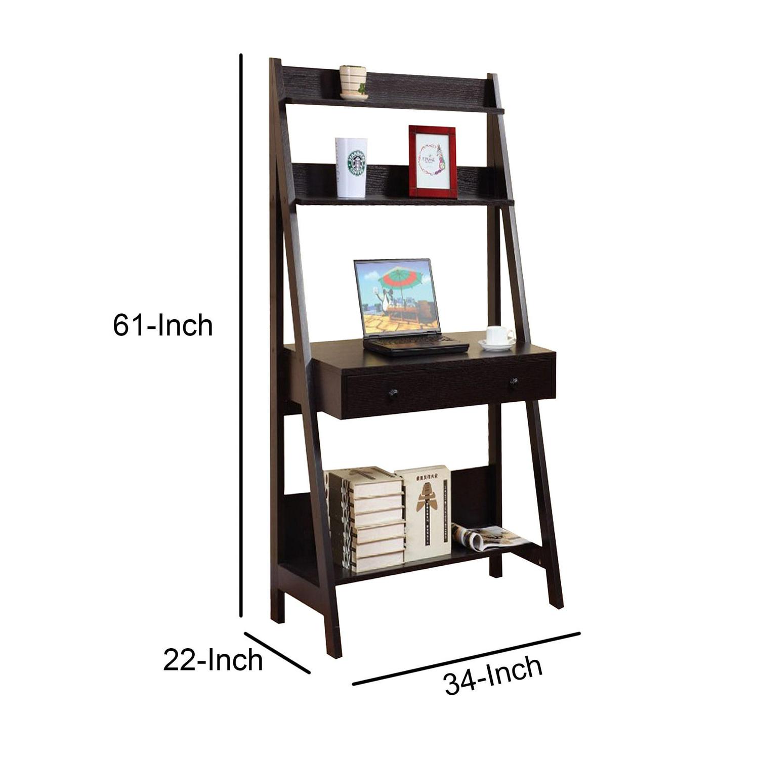 Contemporary Style Ladder Home Office Desk With 3 Open Shelves and 1 Drawer, Brown- Saltoro Sherpi