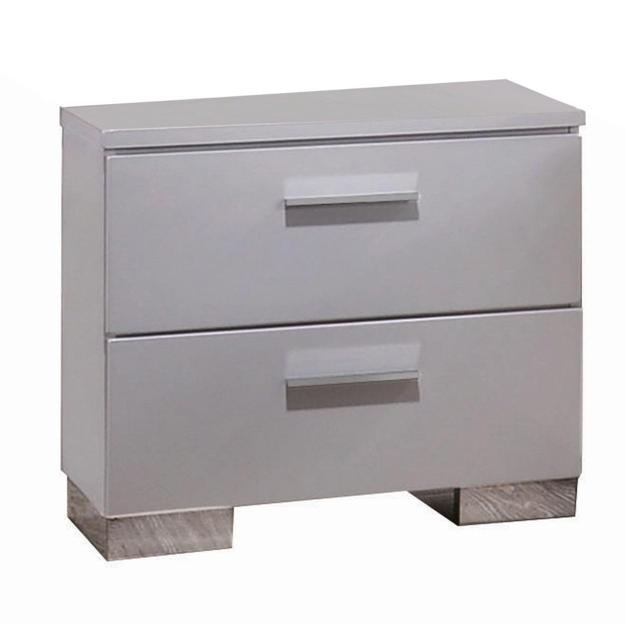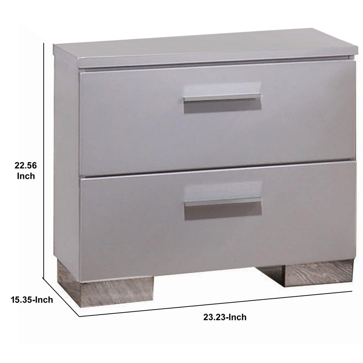 Contemporary Style Wooden Nightstand with Two Drawers and Metal Bracket Legs , White- Saltoro Sherpi