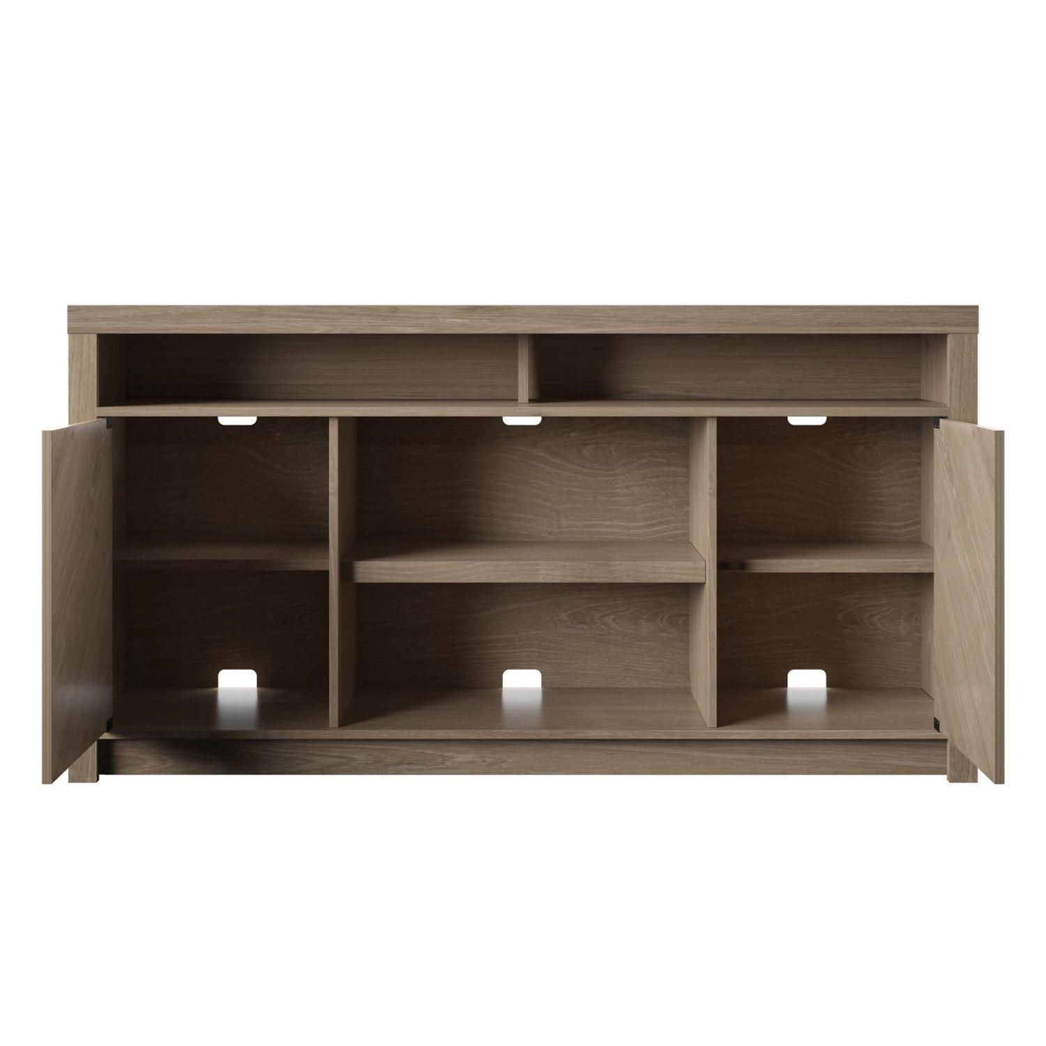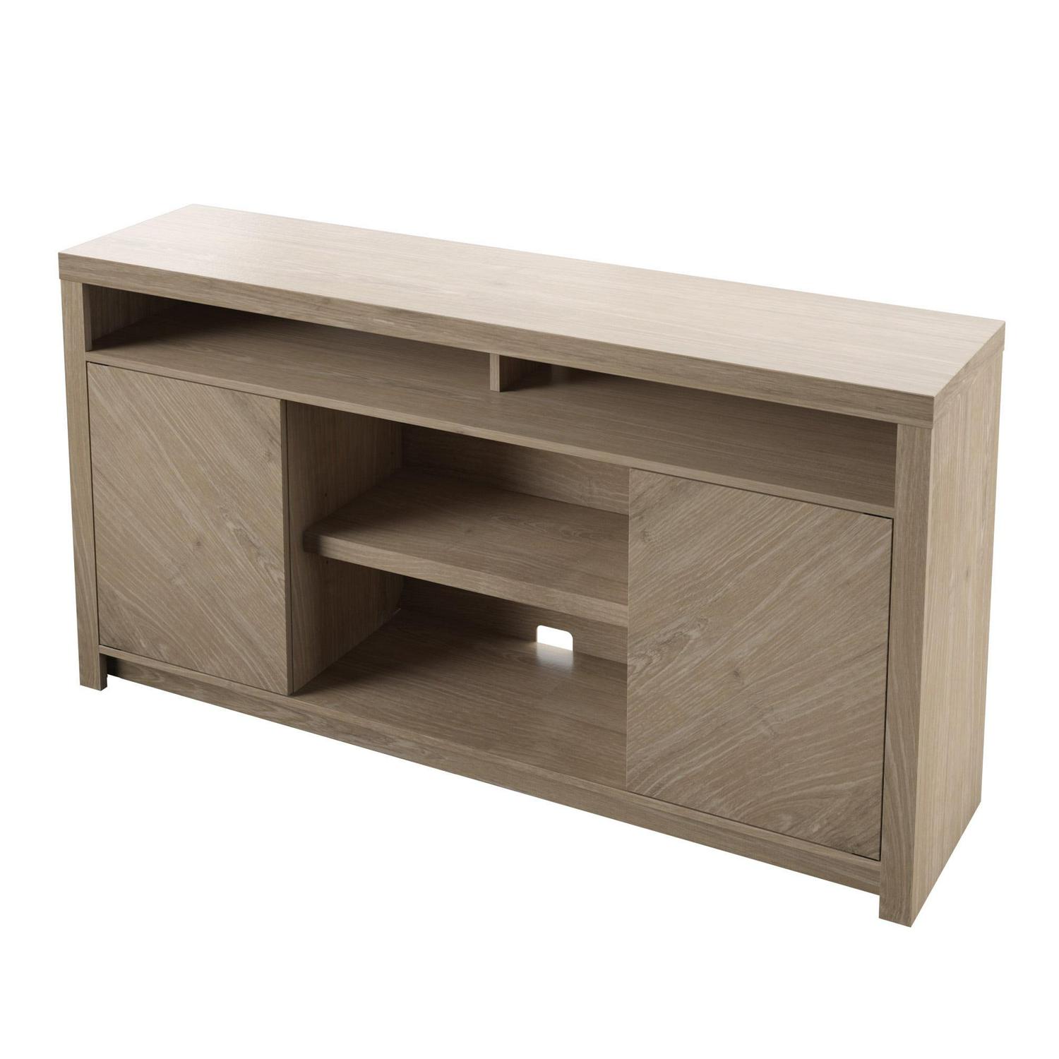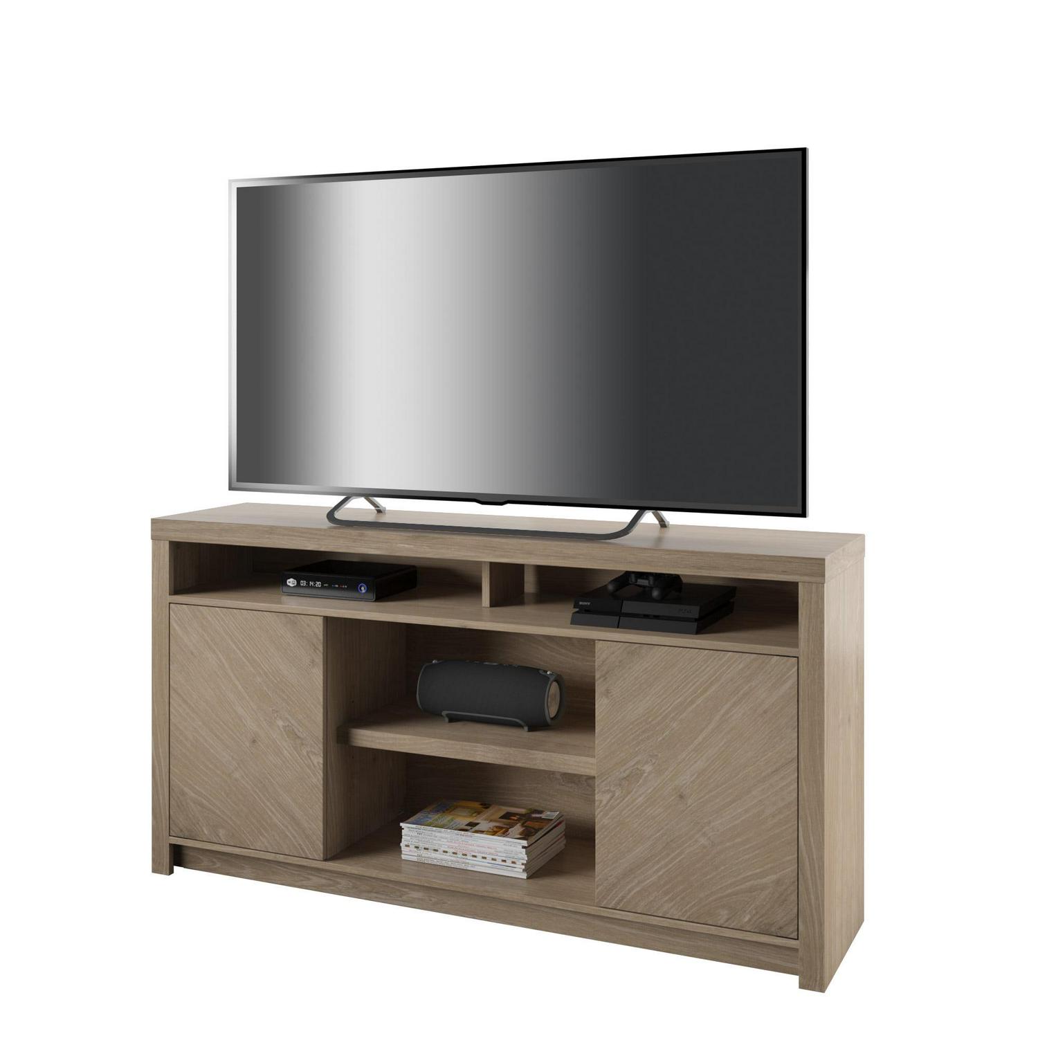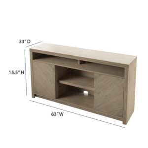 Contemporary TV Stand for TVs up to 70 with Open Center Shelves, Natural Oak