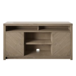 When modern style meets functional design, the result is this TV stand that can hold most flat screen TVs up to 70 inches and 70 pounds. With plenty of space for your AV components, it features an open, partitioned media bay for easy remote control access. The middle shelf is also open and adjustable offering even more room for electronics, like a cable box, Blu-ray player, or gaming console. Plus, each cabinet has one adjustable interior shelf to store movies, games, throws, and more. Adjust each shelf to one of three height levels for storage that is flexible enough to accommodate all of your living room must-haves.