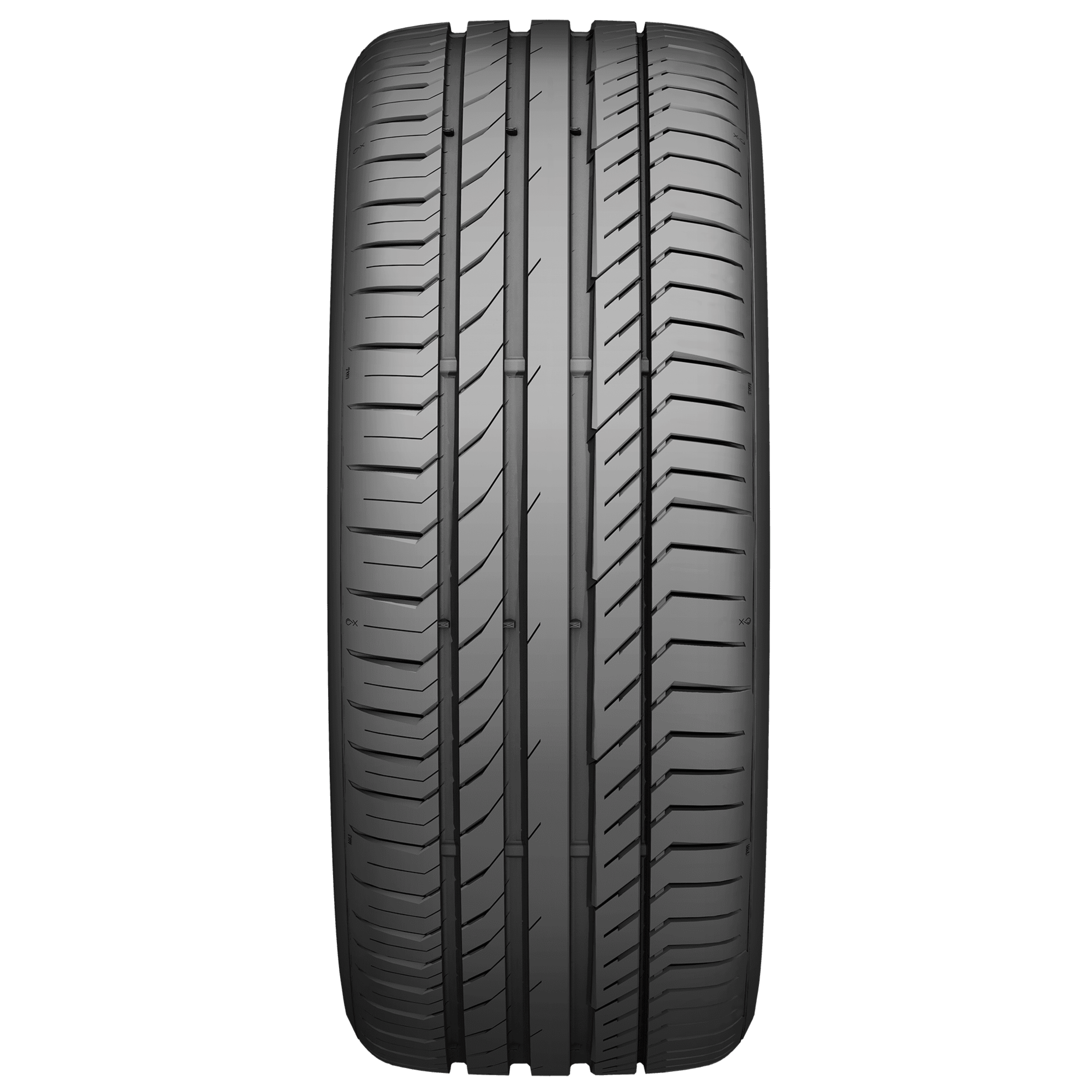 An ultra high performance tire, the ContiSportContact 5 from Continental is designed for use on sports cars and luxury sedans and offers drivers shorter braking distances, improved cornering traction, and better fuel efficiency.