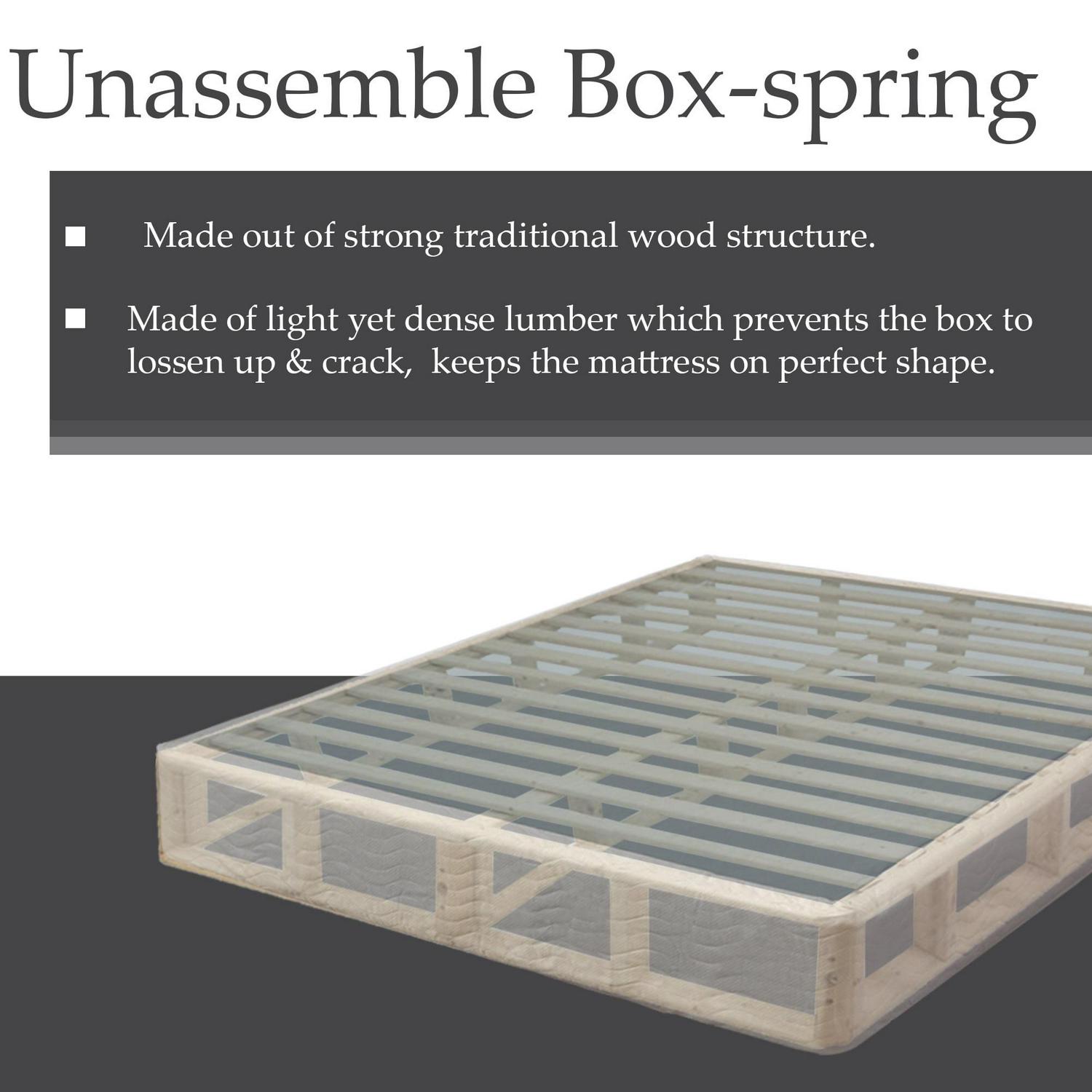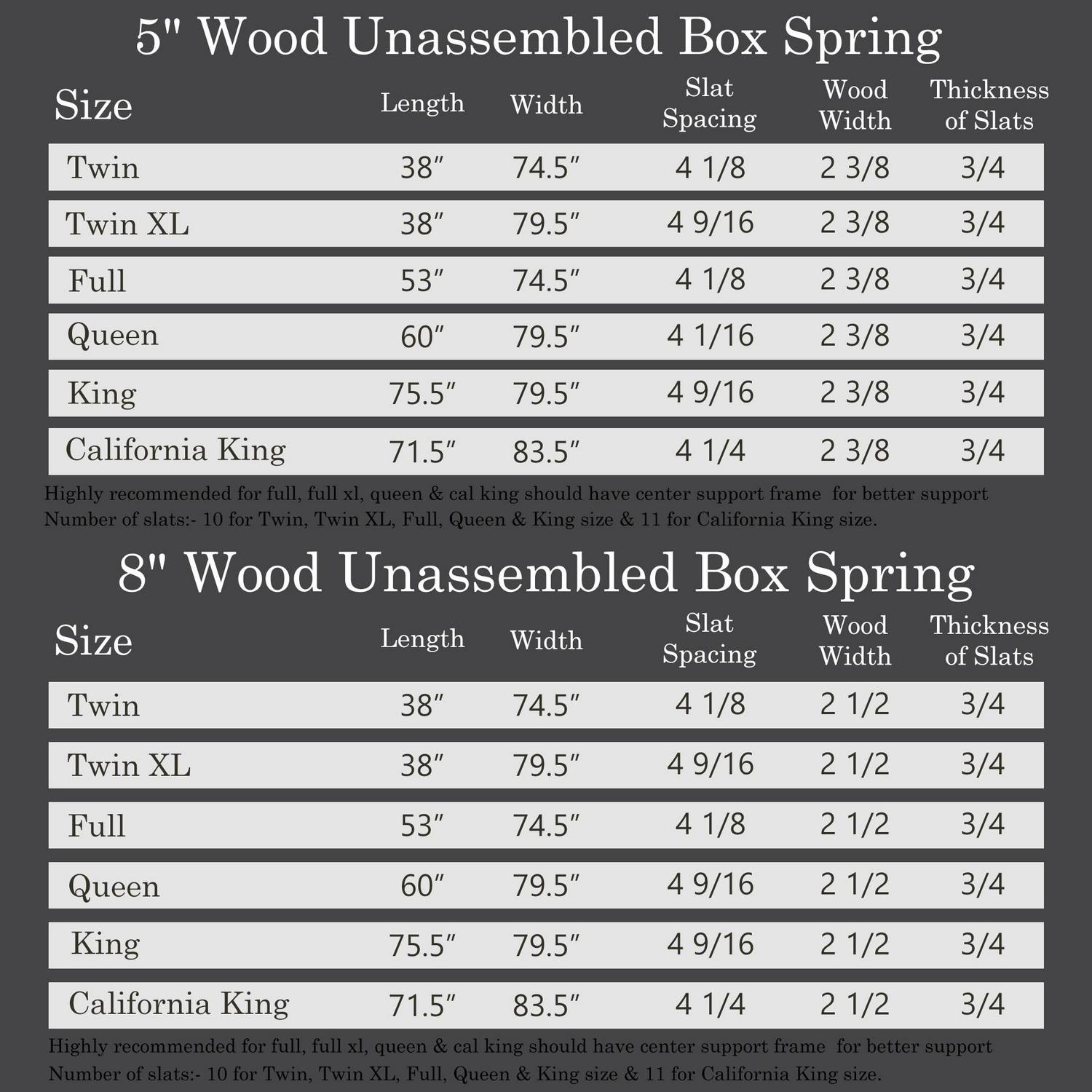 – VERSATILE COMPATIBILITY: Wood box spring provides versatile support for any type of mattress, including memory foam, innerspring, latex, and hybrid models. Our box springs are available in standard sizes, such as twin, twin XL, full, queen, king, and California king.