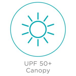 – UPF 50+ sun canopy with peek-a-boo window and zip-open mesh panel