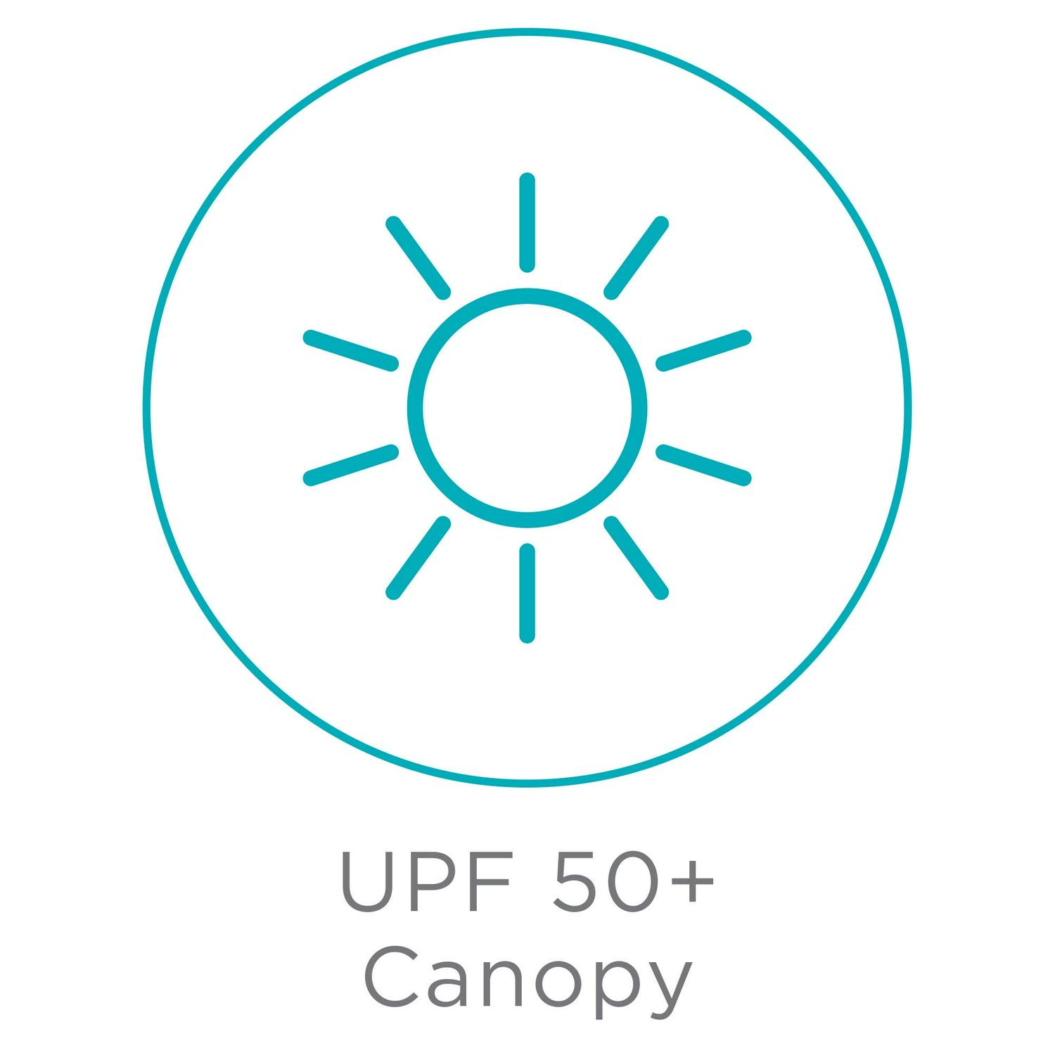 - UPF 50+ sun canopy with peek-a-boo window and zip-open mesh panel