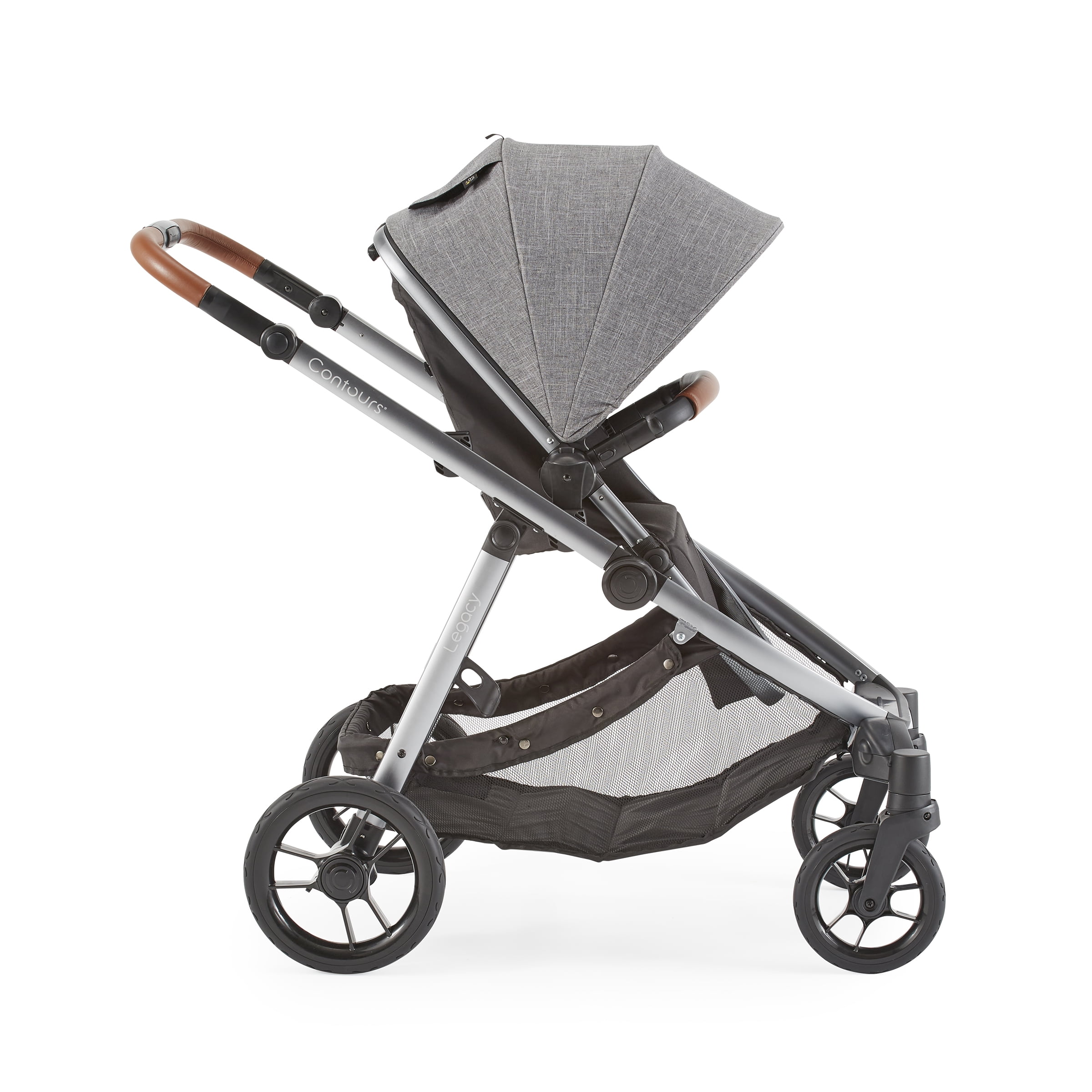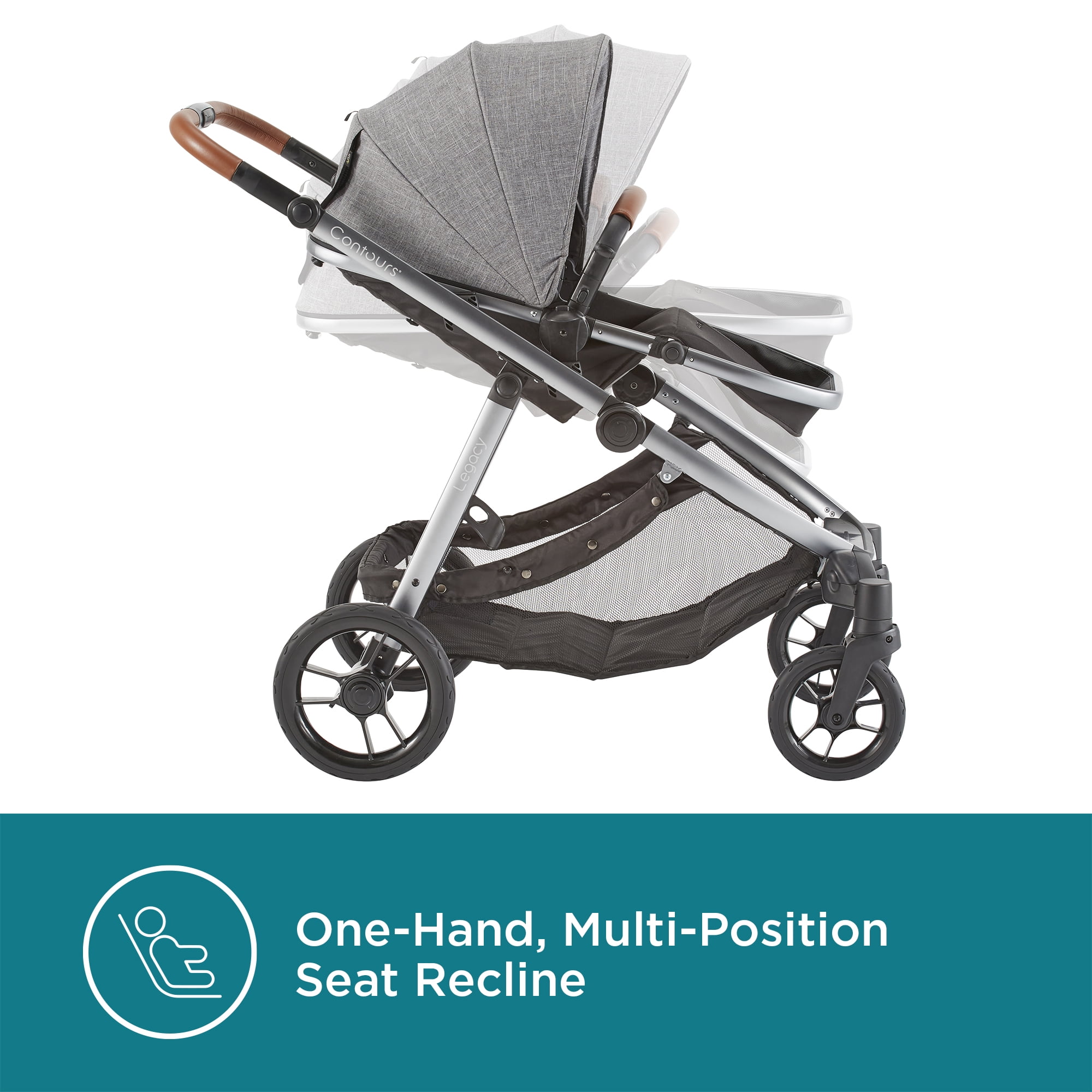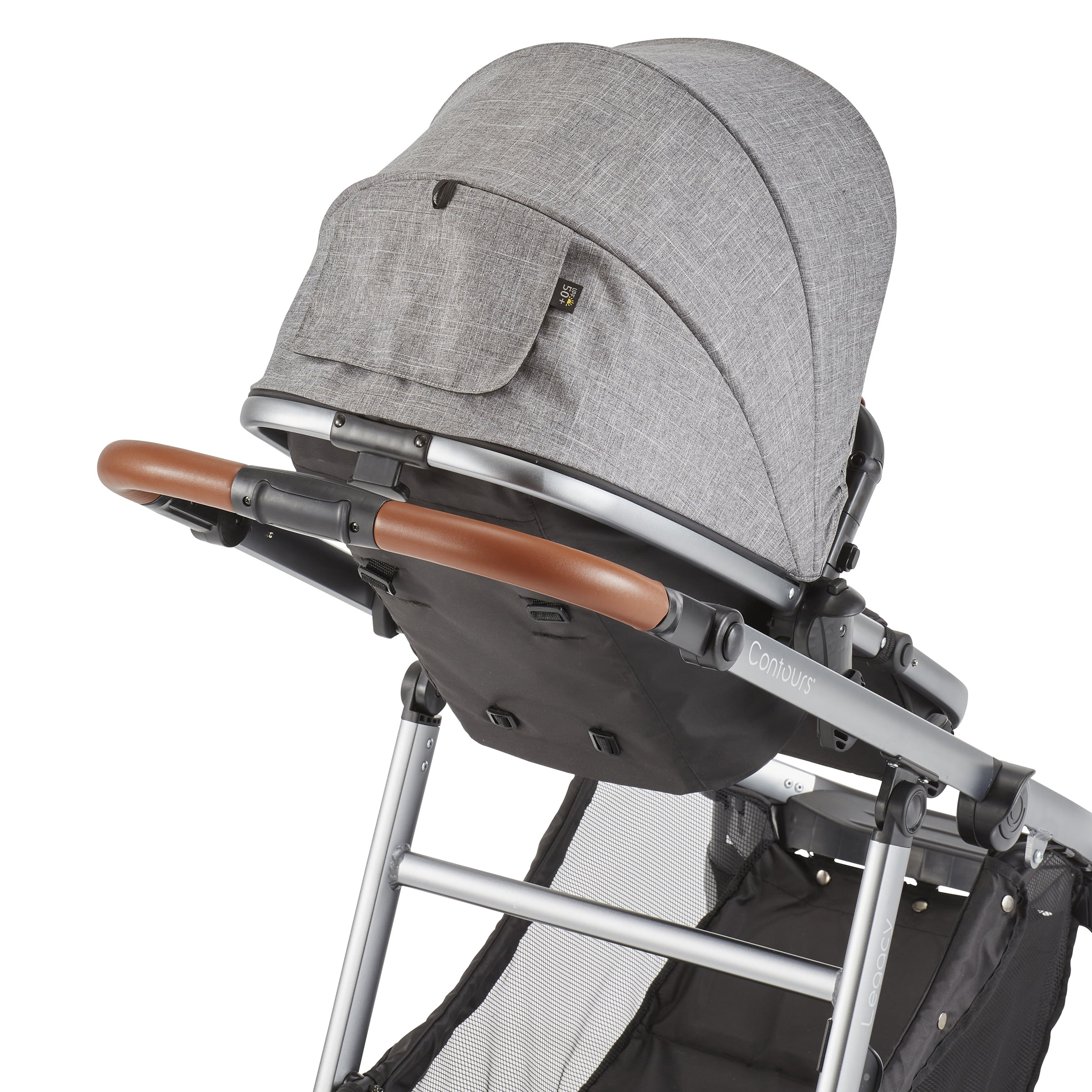 We’re always working to make your life as a parent easier. Elegant and understated, the Contours Legacy convertible stroller can easily grow with your family from single to double stroller just when you need it. Start off with single mode and add a pramette or infant car seat adapter (sold separately) for your infant, or add a second seat (sold separately) when your family grows to two. With 20+ seating modes to choose from, the Contours Legacy stroller is perfect for your family’s unique journey. Lux detailing such as a leatherette handle, sandal-friendly brake, and expandable UPF 50+ sun canopy makes your strolls comfy and stylish. Disney-size approved (any seating configuration) as long as the parent handle is in the uppermost position.