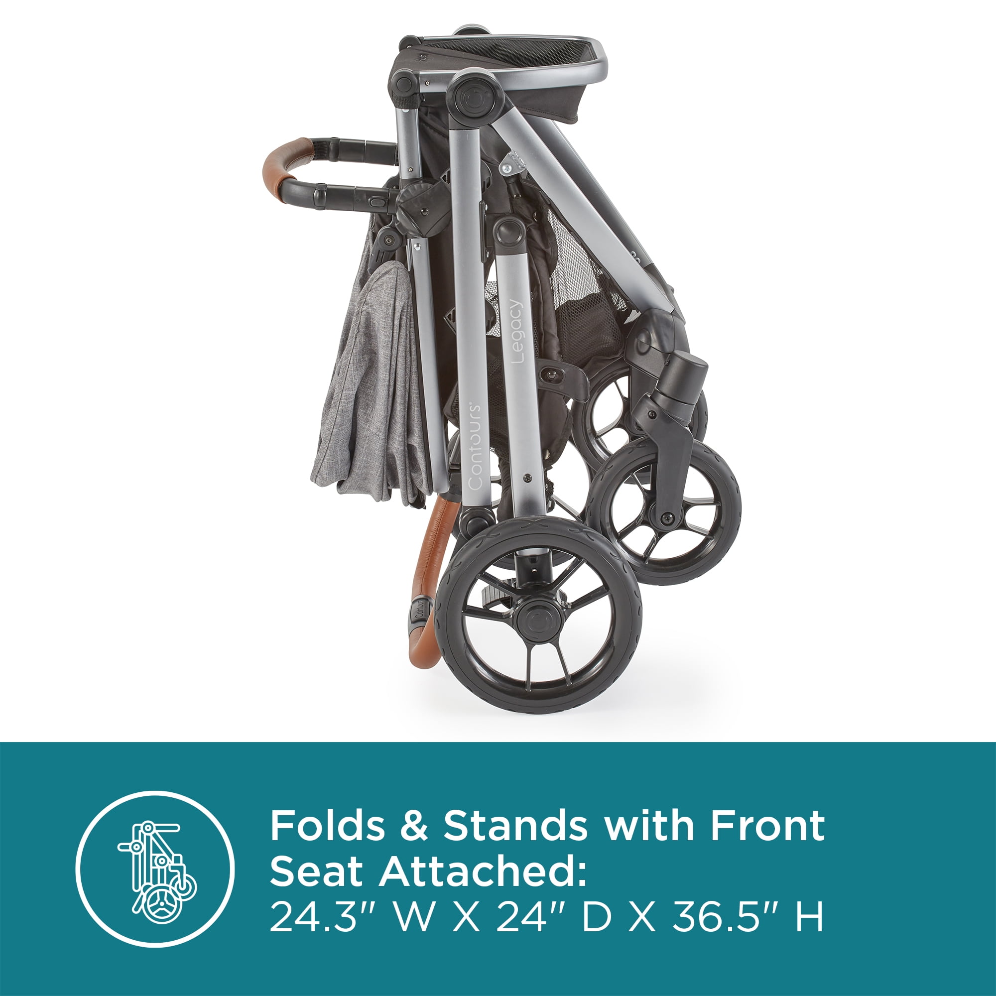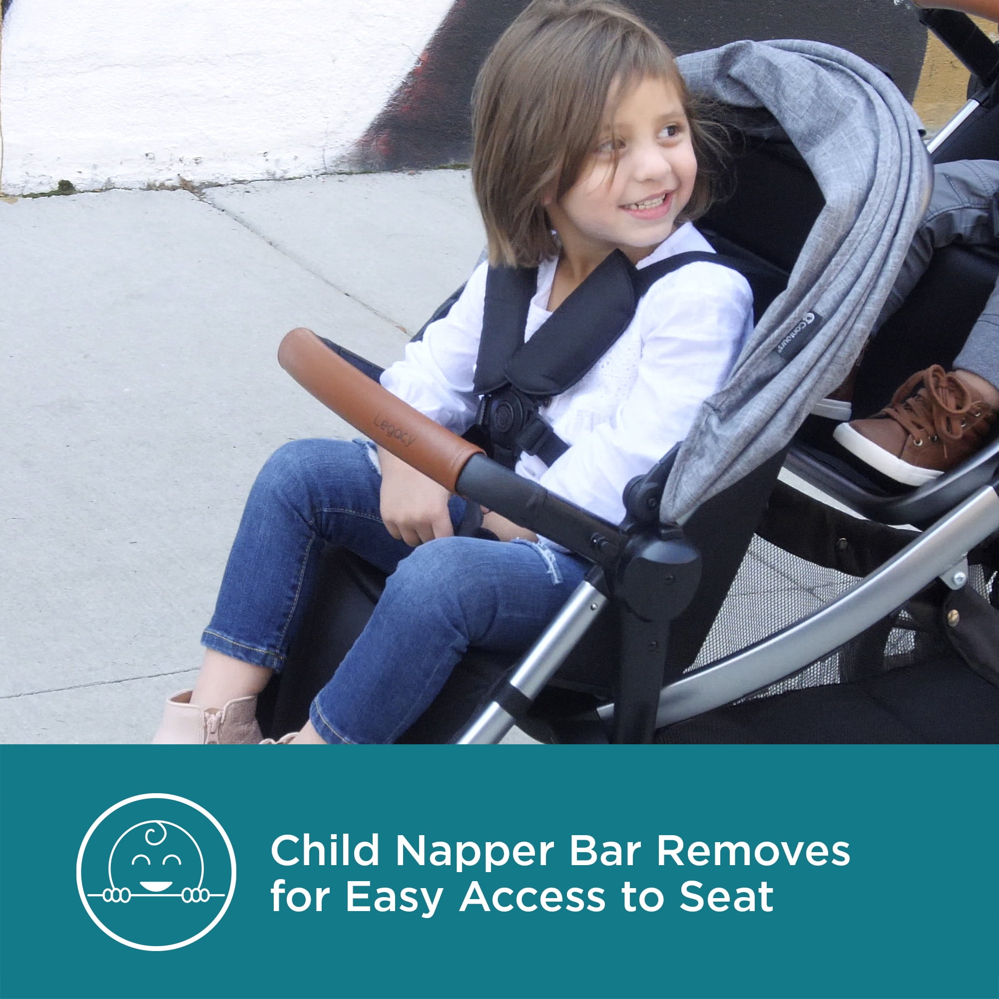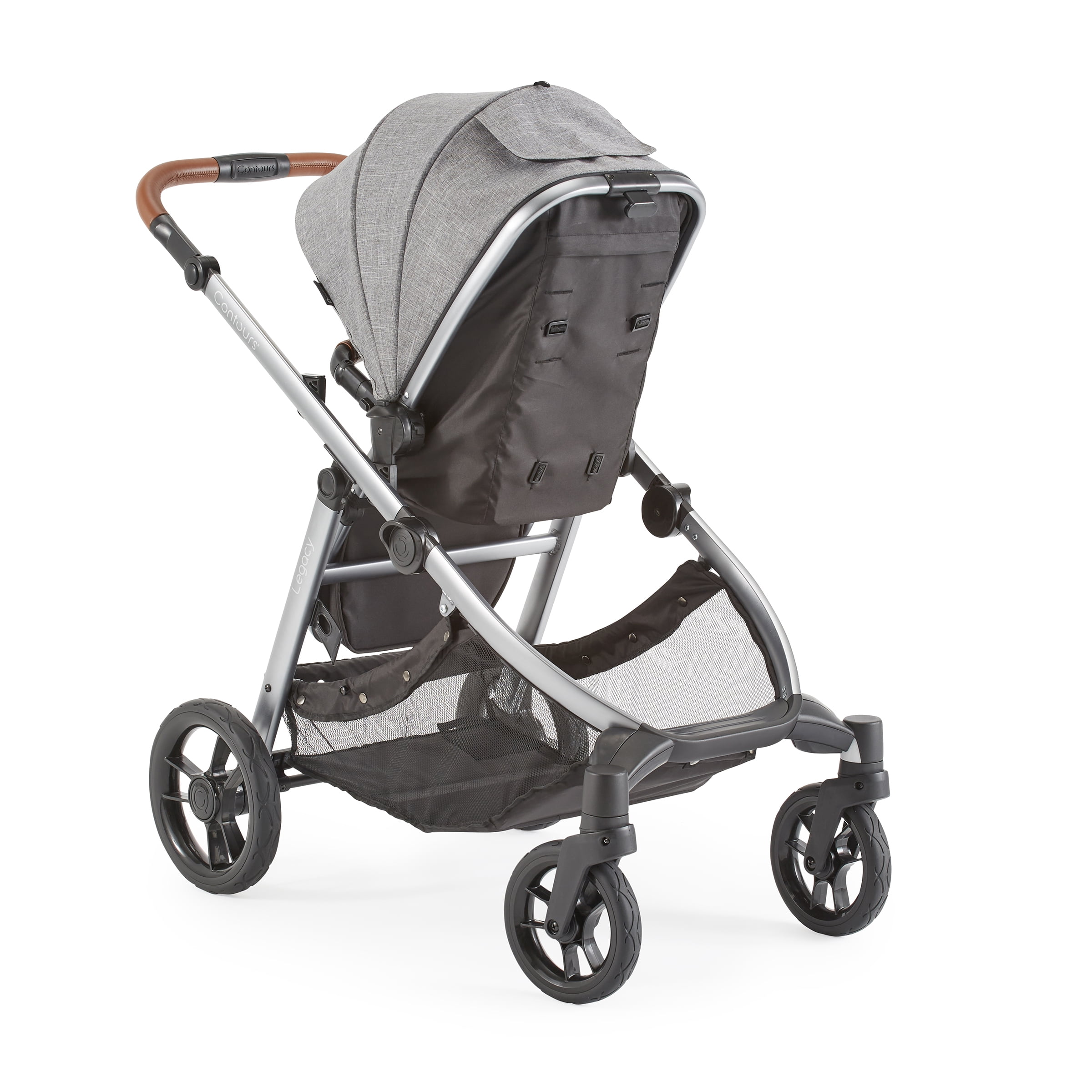 We’re always working to make your life as a parent easier. Elegant and understated, the Contours Legacy convertible stroller can easily grow with your family from single to double stroller just when you need it. Start off with single mode and add a pramette or infant car seat adapter (sold separately) for your infant, or add a second seat (sold separately) when your family grows to two. With 20+ seating modes to choose from, the Contours Legacy stroller is perfect for your family’s unique journey. Lux detailing such as a leatherette handle, sandal-friendly brake, and expandable UPF 50+ sun canopy makes your strolls comfy and stylish. Disney-size approved (any seating configuration) as long as the parent handle is in the uppermost position.