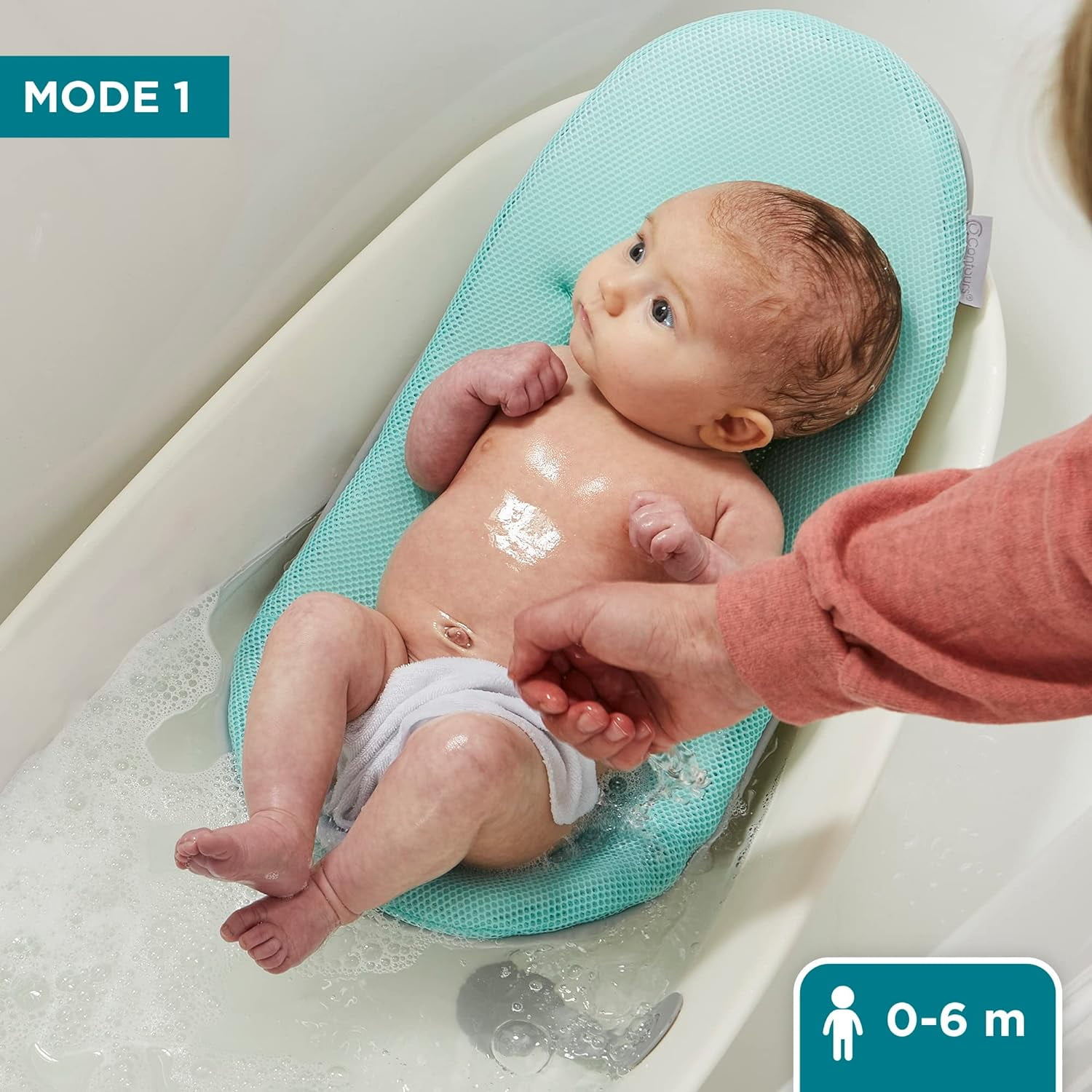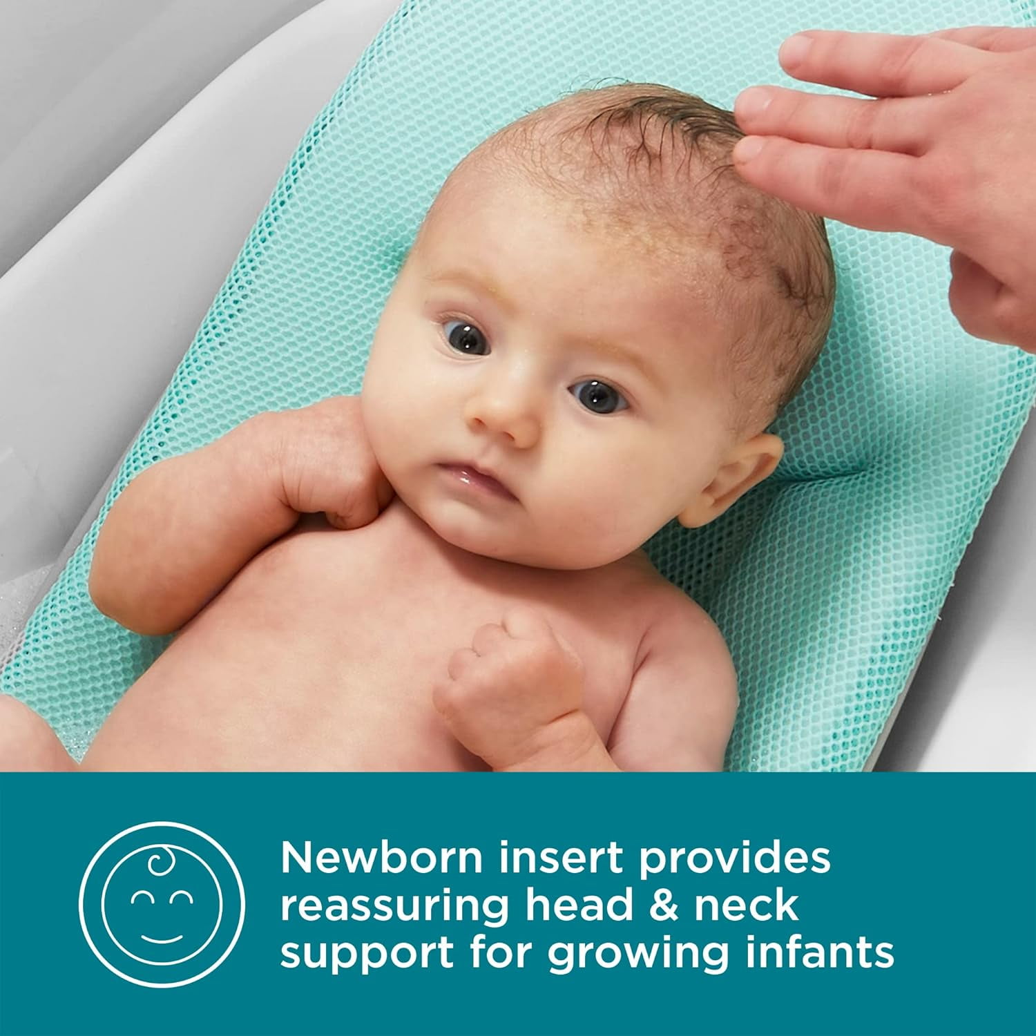 MAXIMUM COMFORT: 3D mesh cushion provides a plush, comfy area for baby’s bath. This cushion is made of safe, materials that ensure a relaxing bath time and quicker cleanup INFANT SUPPORT & SAFETY: Baby bath seat features reassuring head & neck support for your growing little one (0-6 months) while the tub features four slip-resistant feet KEEP BABY WARM: 2-in-1 drain plug is an innovative solution for cycling in fresh water through the side and bottom of the tub – keeping baby warm and clean throughout baby bath time, GROW-WITH-ME BATHTUB: When baby can sit up unassisted (6+ months) simply remove the newborn support. The cushion can also be removed and placed in the Oasis tub’s bottom for a comfy toddler bathtub EASY-TO-CLEAN: Baby bath tub basin has sleek, rounded edges that are easy to wipe clean while the baby bath cushion air dries quicker than traditional foams and is machine-washable & dryer friendly