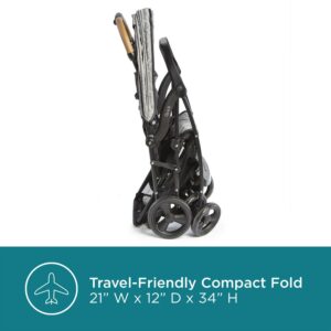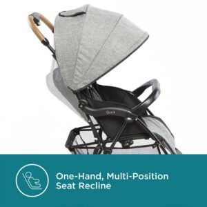 The Contours Quick is a lightweight baby stroller that can accommodate 30+ different car seats or a toddler up to 50 lb – simply buckle and go! Offering premium features in a lightweight 12.8 lb design, the Quick is the ideal travel stroller with car seat compatibility (car seat sold separately). Unlike many baby strollers, the Quick is compatible with 30+ infant car seats with no adapter required! The premium, vegan leather handle will have you strolling in style, and the one-hand fold and upright stand when folded makes it easy to store. Front-wheel suspension, a height-adjustable 5-point padded safety harness, removable front napper bar, multi-position reclining seat, and sun canopy with UPF 50+ protection provides a comfy ride. A peek-a-boo window lets you easily check on baby and the large mesh panel in the back of the canopy provides extra airflow. Whether used with infant car seat or as a lightweight travel stroller, the Quick grows with baby from birth as a car seat stroller, or fits baby up to 50 lb. as a toddler stroller simply buckle and go!
