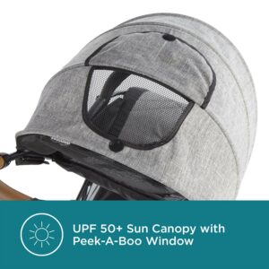 - Large sun canopy with UPF 50+ protection and a mesh panel for extra airflow