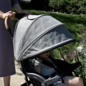 – Large sun canopy with UPF 50+ protection and a mesh panel for extra airflow