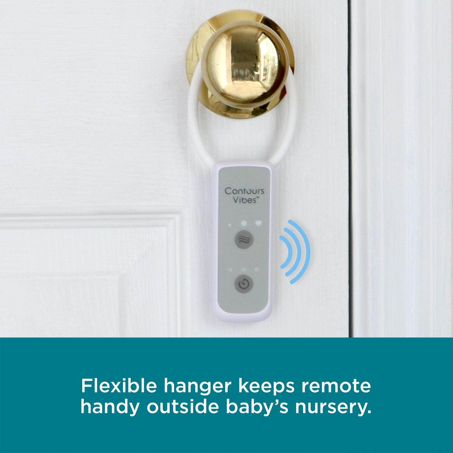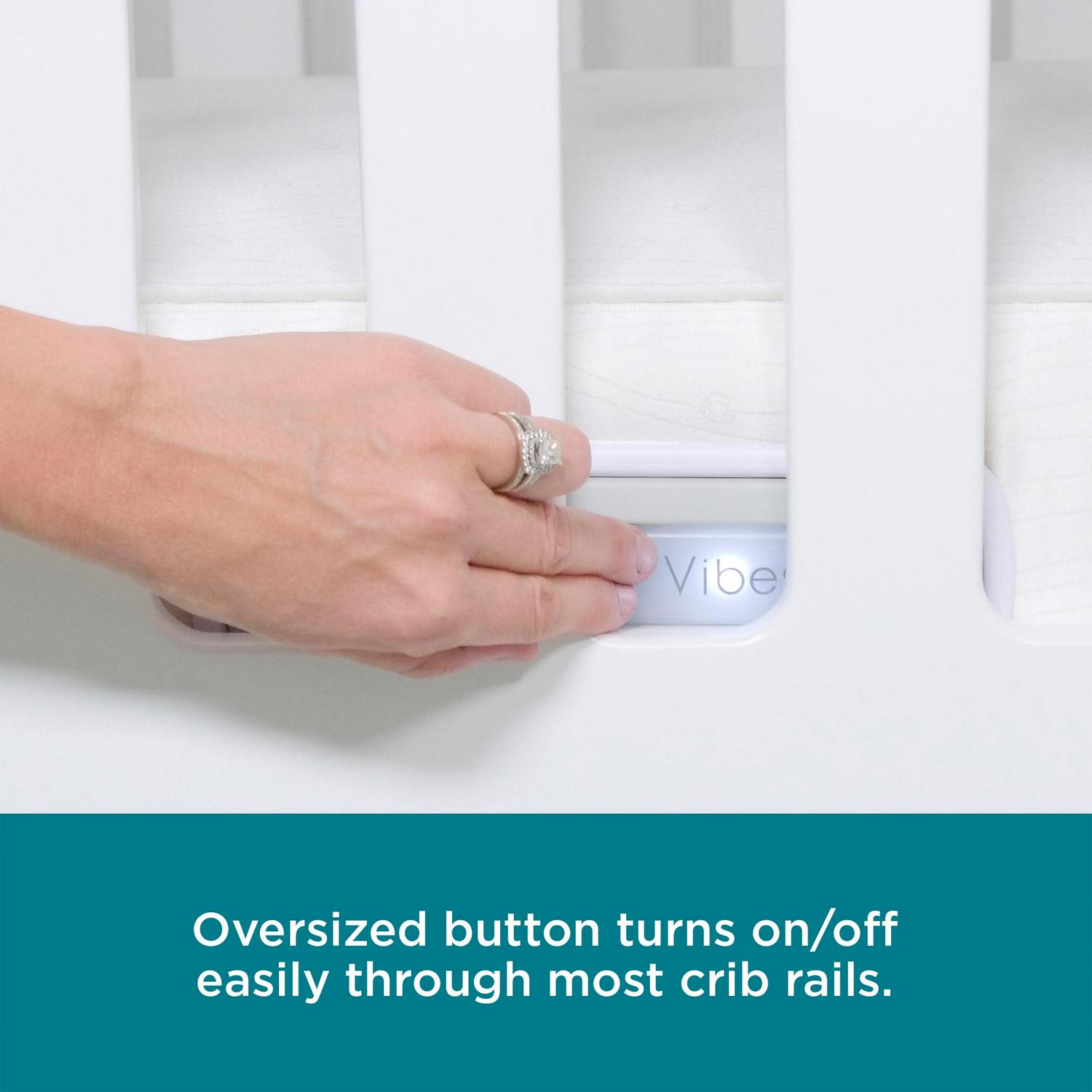 – Flexible remote hanger fits over doorknobs; oversized button on the mattress for easy access through most crib rails.