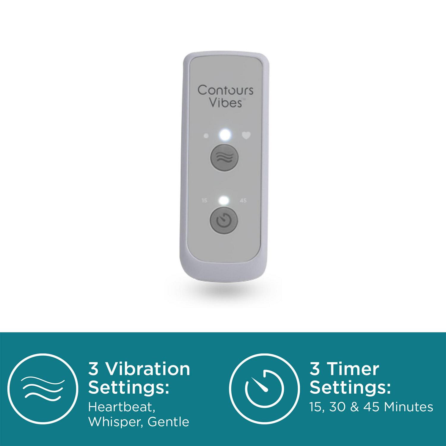 - 3 Vibration modes: heartbeat, whisper and gentle plus 3 timer settings: 15, 30 and 45 minutes.