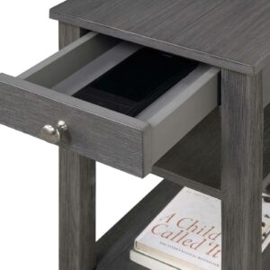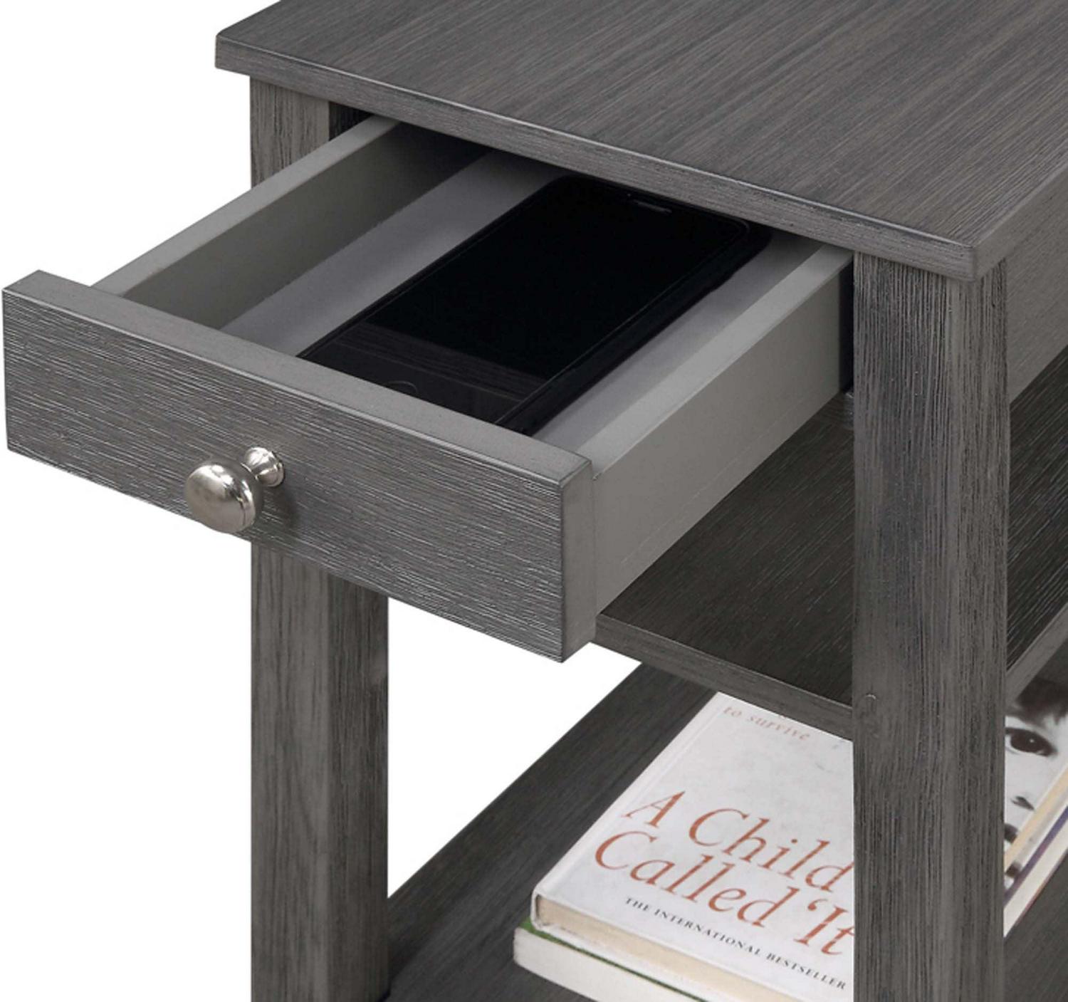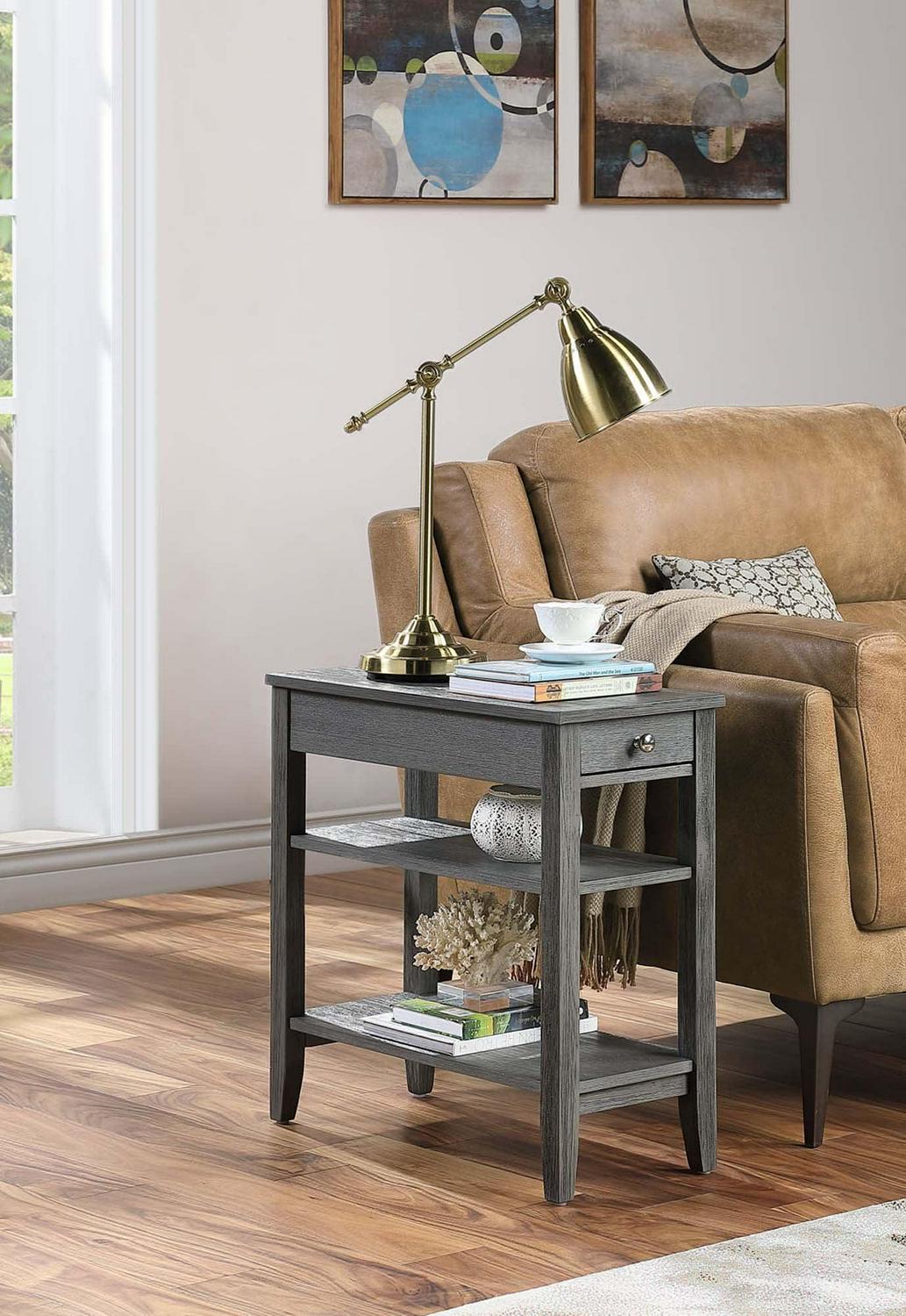 Convenience Concepts American Heritage 1 Drawer Chairside End Table with Shelves, Wirebrush Dark Gray