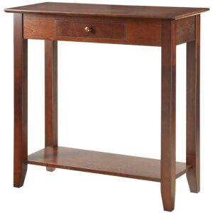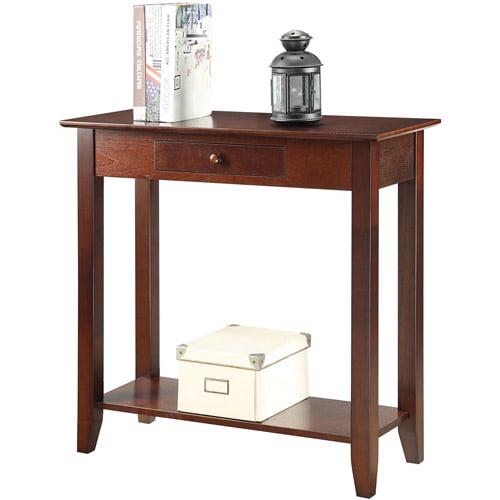 American Heritage Hall Table with Drawer and Shelf, Espresso With it is charming and modern design, the American Heritage Hall Table is the perfect addition to any decor. Featuring a convenient drawer for storage that allows you to keep small accessories. Also featuring a bottom shelf for additional storage, you can display your favorite collectibles. Now Available in multiple finishes.
