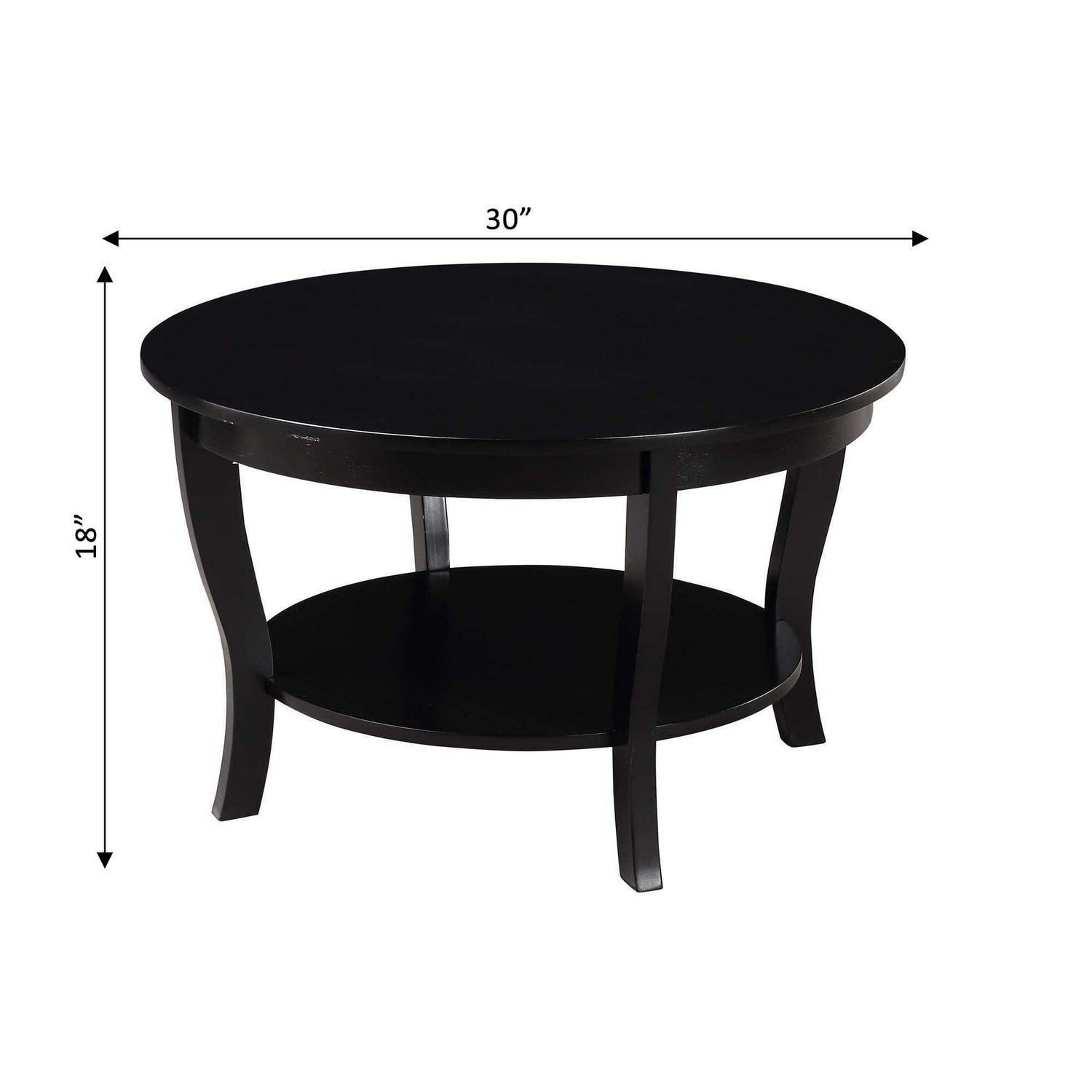 Convenience Concepts American Heritage Round Coffee Table with Shelf, Black
