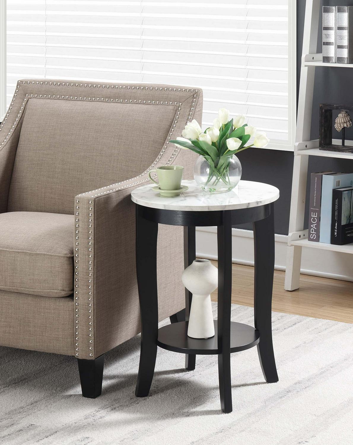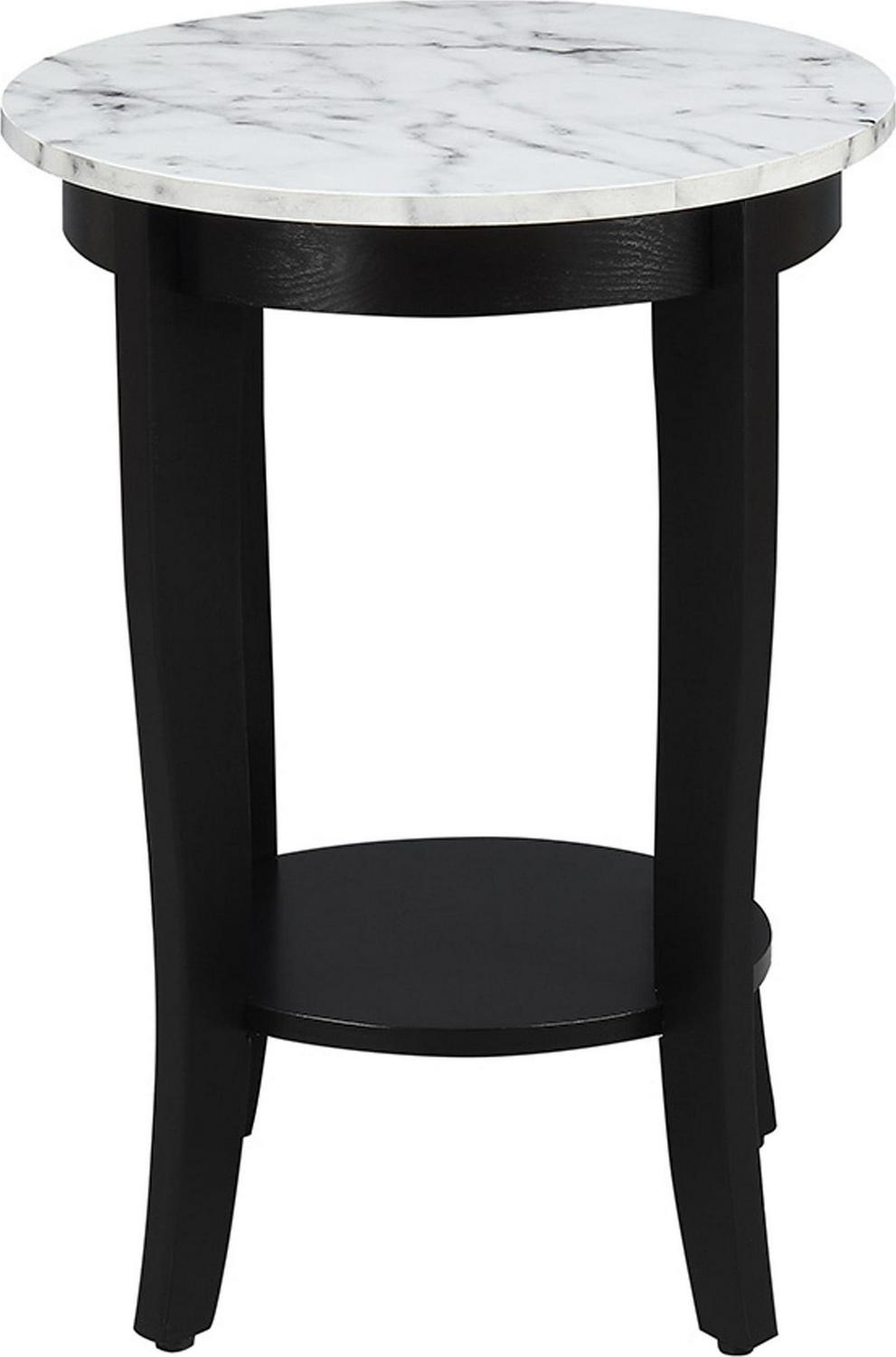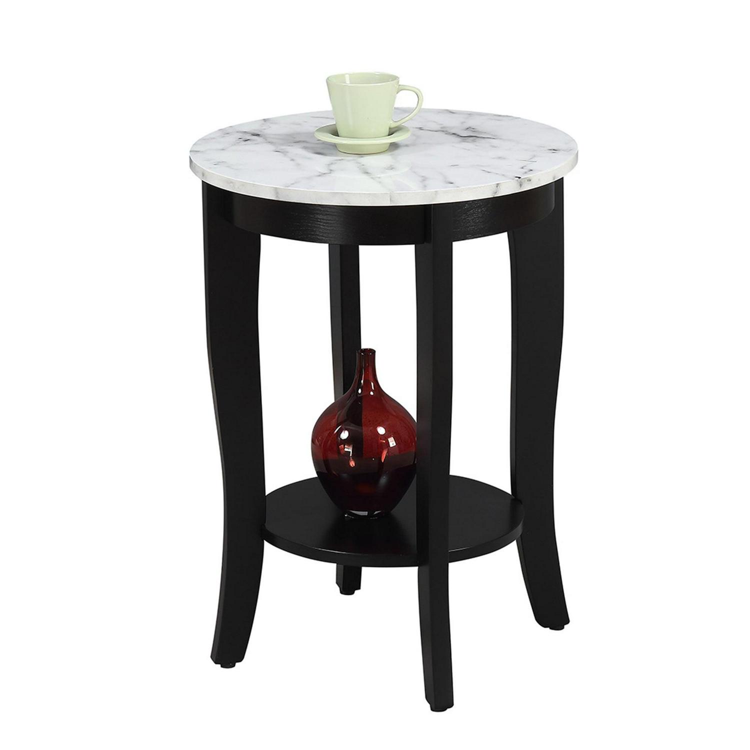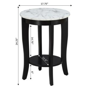 Convenience Concepts American Heritage Round End Table with Shelf, White Faux Marble/Black
