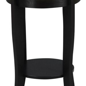 The American Heritage Round End Table with Shelf combines elegance and sophistication. Featuring a bottom shelf allowing for additional storage and display area. Available in multiple finishes; and the slightly curved legs this piece will easily complement any new or existing decor.
