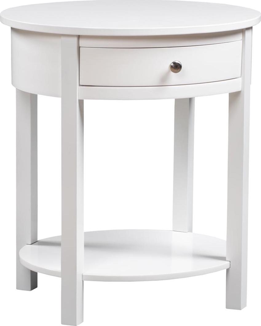 Classic Accents Cypress End Table The simple yet charming influence of the Cypress End Table by Convenience Concepts is the perfect finishing touch that will pull any room together. The oval shape paired with straight legs create a classic silhouette. Featuring a drawer for concealed storage you can hide away unsightly accessories and a bottom shelf for additional open storage and display. Crafted from solid wood this piece will provide durability and quickly become a staple in your home. Available in multiple finishes the Cypress End Table will easily coordinate with any new or existing decor.