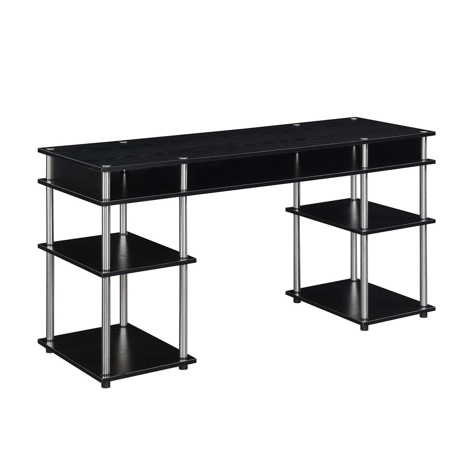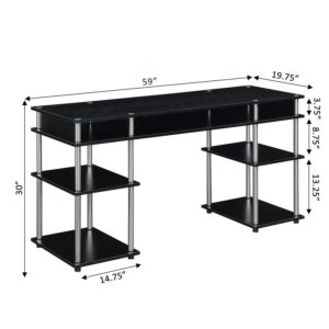 Convenience Concepts Designs2Go No Tools 60 inch Deluxe Student Desk with Shelves, Black/Silver Poles