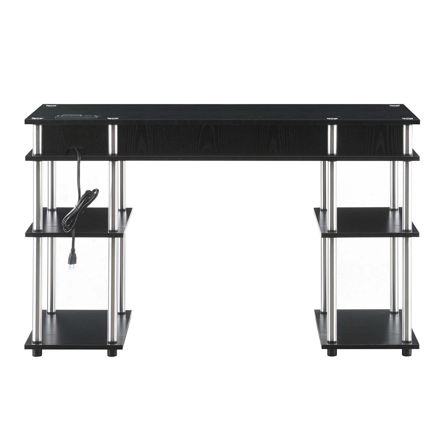 Convenience Concepts Designs2Go No Tools Student Desk with Charging Station and Shelves, Black