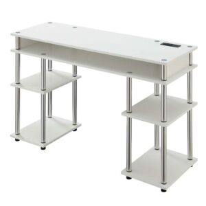 Convenience Concepts Designs2Go No Tools Student Desk with Charging Station and Shelves, White