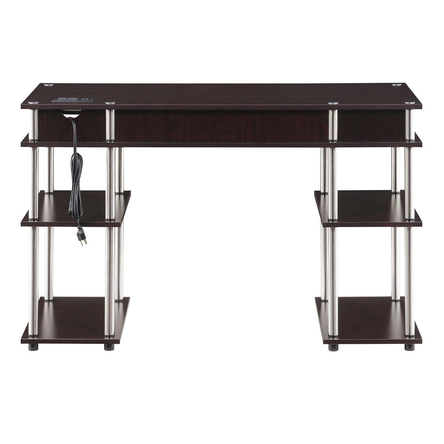 Convenience Concepts Designs2Go No Tools Student Desk with Charging Station, Espresso