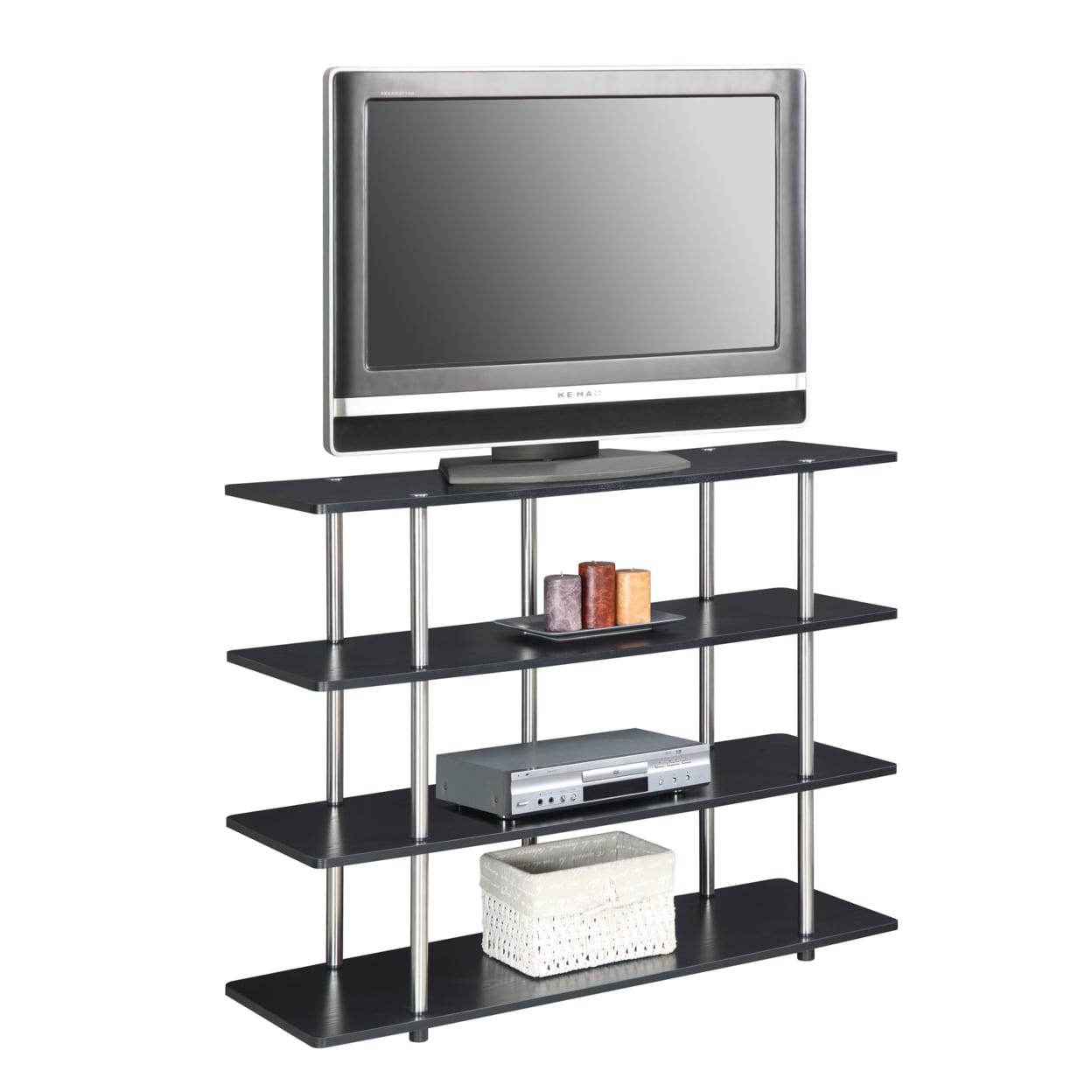 Maximize your entertainment space with the Designs2Go XL Highboy 4 Tier TV Stand from Convenience Concepts. Its open-concept design and contemporary style will fit perfectly in your living or family room. This unit features four spacious tiers of shelving that provide enough space for all your entertainment essentials. These sturdy shelves are engineered from particleboard and woodgrain melamine veneer. Each tier of shelving is supported by stainless-steel poles that will not rust while plastic caps with rubber soles cover the bottom to help protect your floors. The Designs2Go XL Highboy 4 Tier TV Stand is available in multiple finishes and no tools are needed to assemble this unit. Coordinate with additional pieces from the Designs2Go Collection from Convenience Concepts, each sold separately.