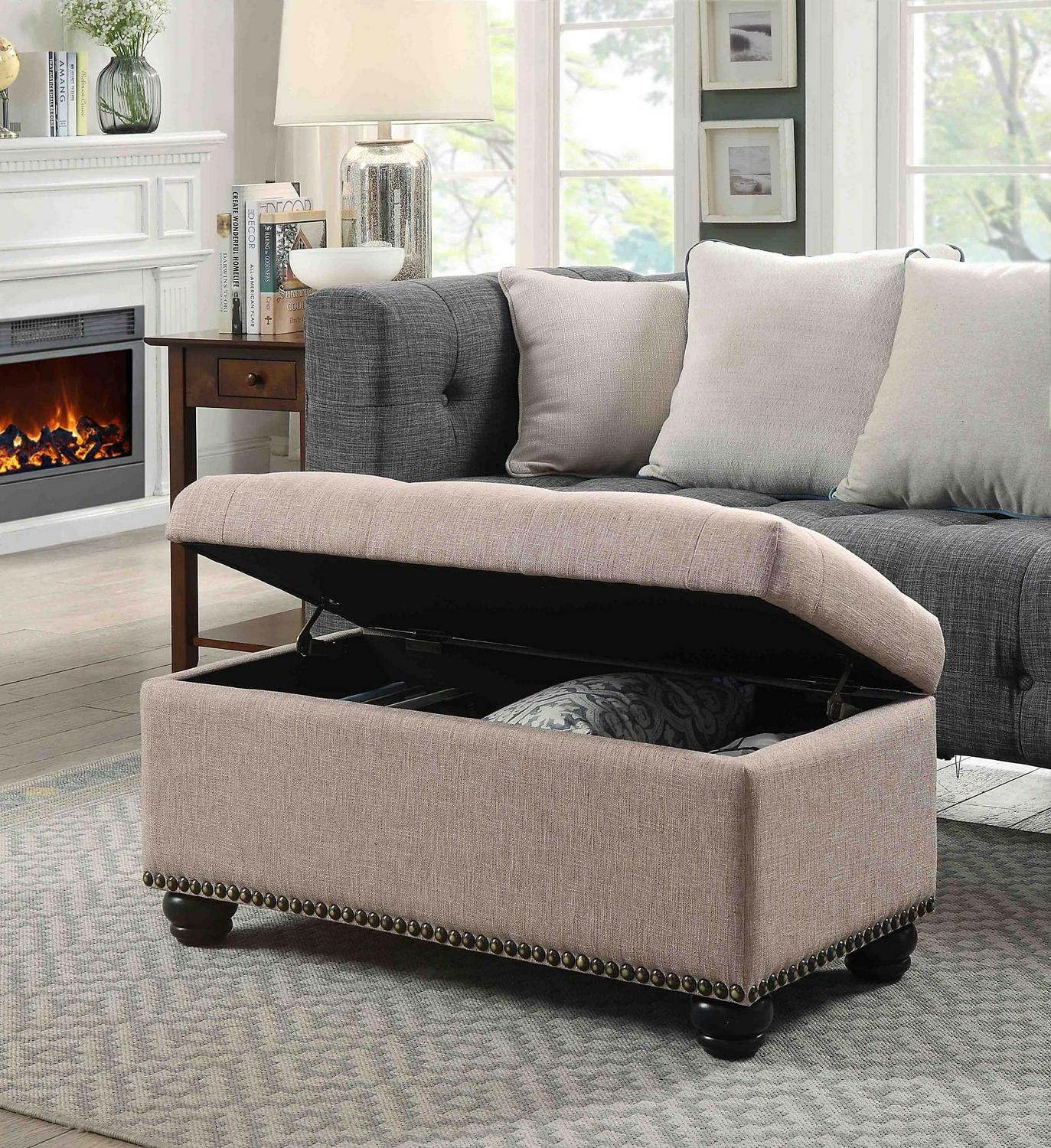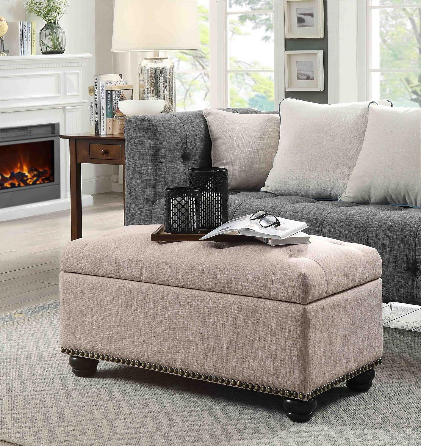 Convenience Concepts Designs4Comfort 7th Avenue Storage Ottoman, Tan Fabric