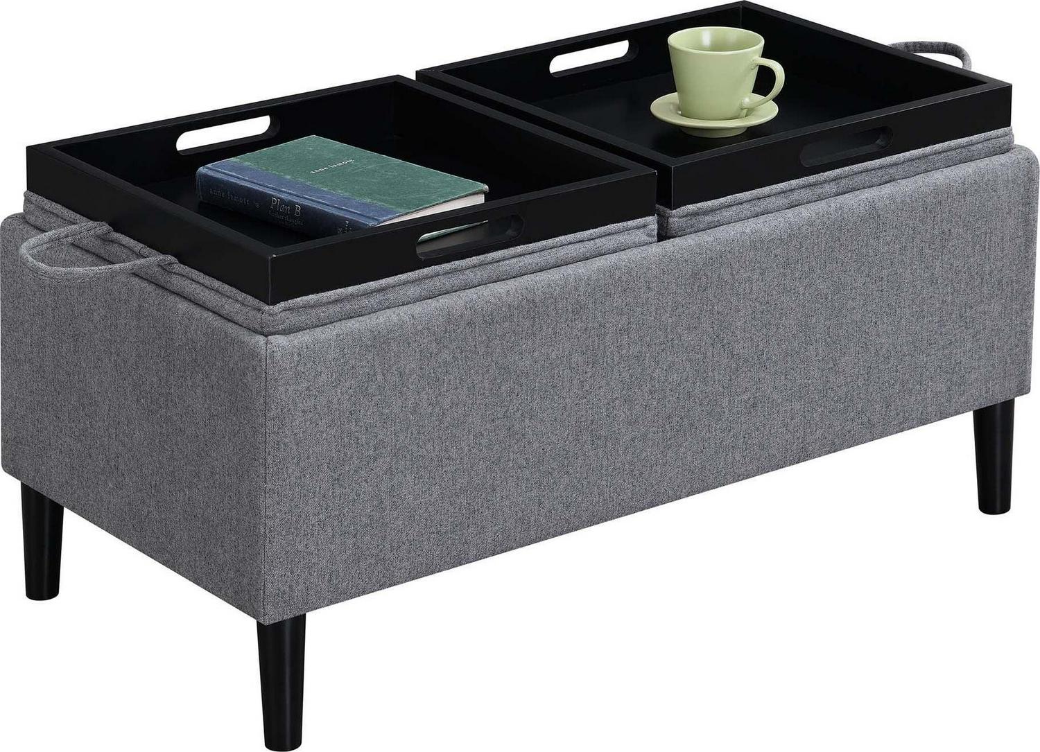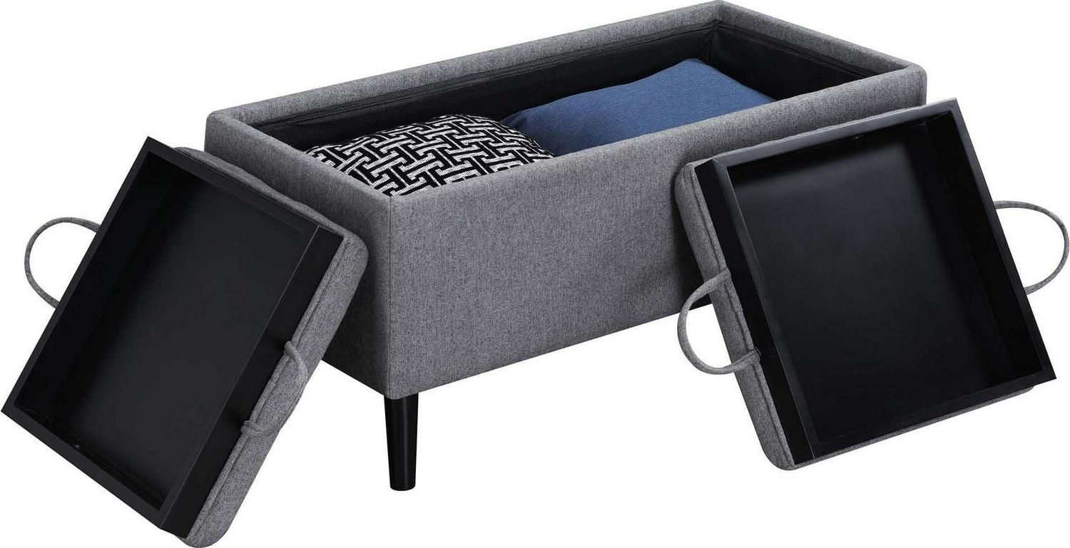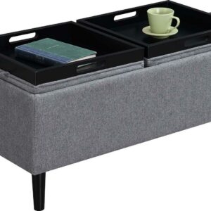 Convenience Concepts Designs4Comfort Magnolia Storage Ottoman with Reversible Trays, Soft Gray Fabric