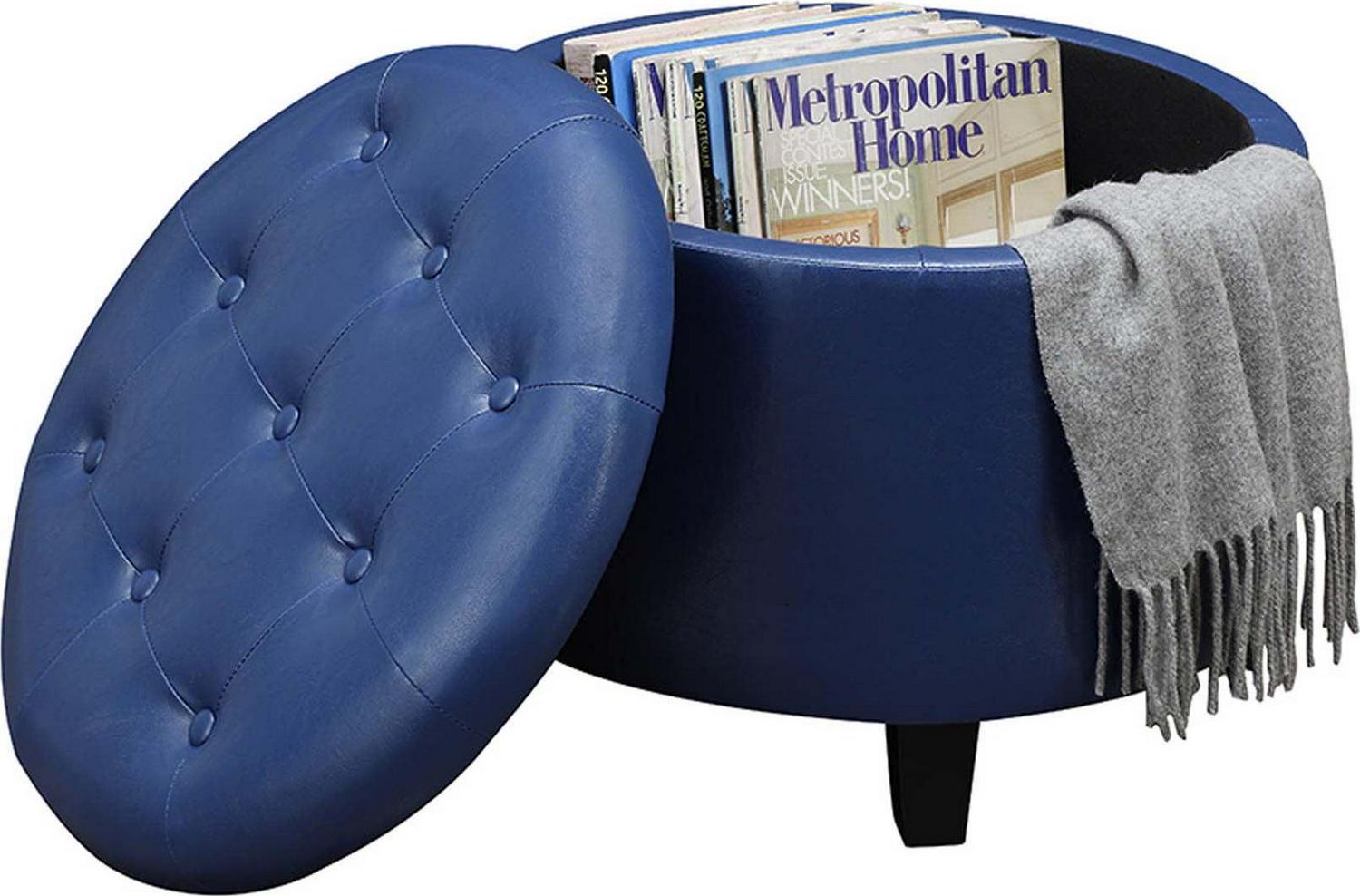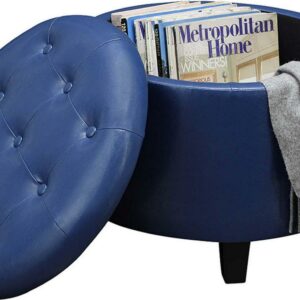 Make a bold statement with the Designs4Comfort Round Ottoman by Convenience Concepts. Featuring a removable lid that provides easy access to concealed storage inside the ottoman. Upholstered in multiple finishes, and a stylish tufted top makes a very comfortable conversation piece!