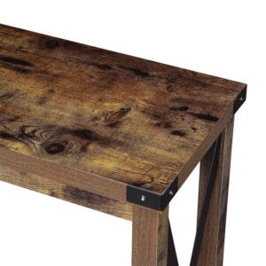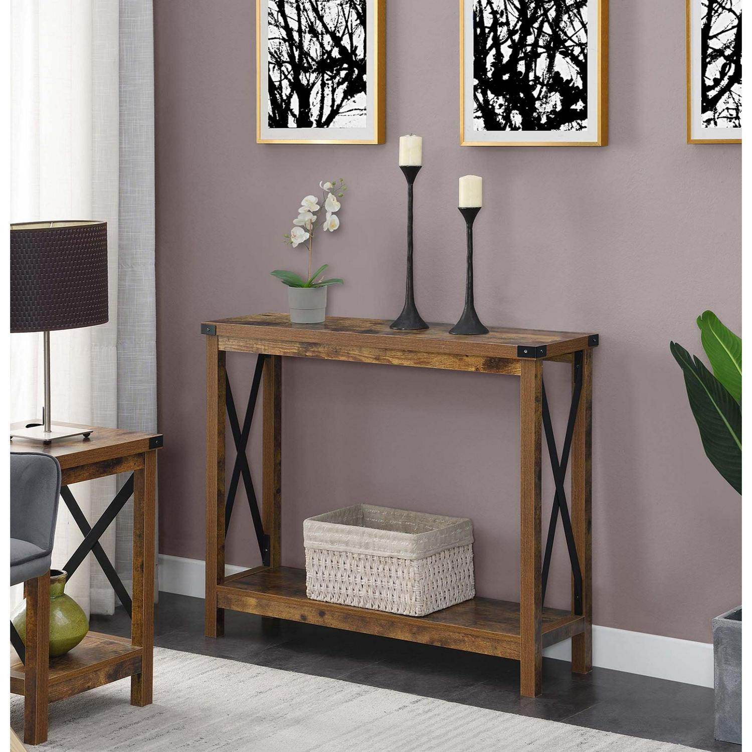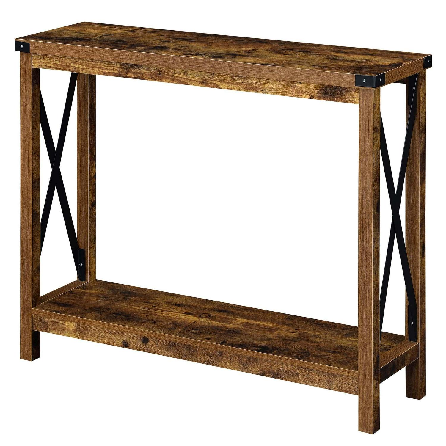 Complete your barn or industrial-themed room with the Durango Console Table by Convenience Concepts. This warehouse inspired design is sure to add style to any desired living space. With ample surface space and an additional bottom shelf; this console table has plenty of room to display décor and even storage. Crafted from particleboard and black powder-coated metal; this unit is built for long-term use. Complete your farmhouse-styled space with additional pieces from the Durango Collection by Convenience Concepts; each sold separately.