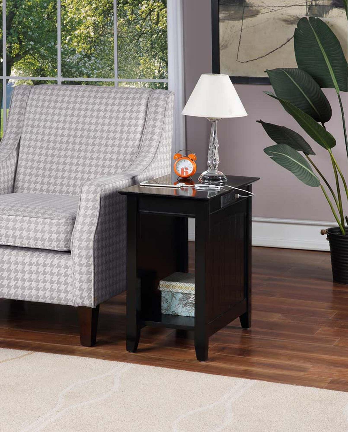 Convenience Concepts Edison End Table with Charging Station and Shelf, Black